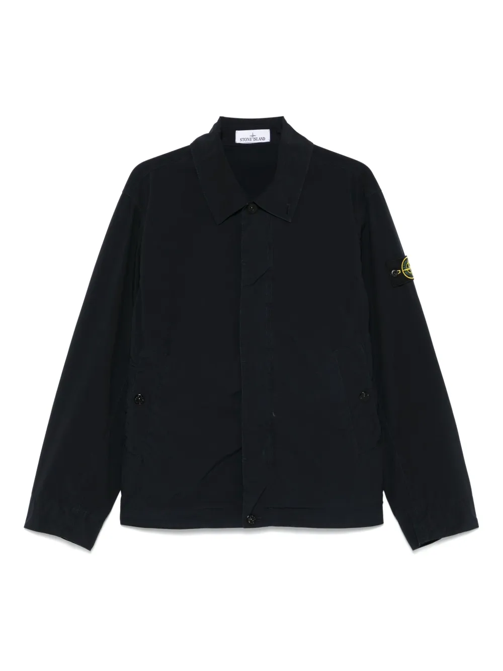 Jacheta Stone Island Compass-Badge negru, din poliester, cu guler clasic, inchidere cu fermoar si nasturi, maneci lungi, buzunare laterale, eticheta detasabila Compass Badge cusuta pe o maneca si tiv drept. Potrivita pentru sezonul primavara/vara. 64% poliester; 36% elastomultiester.