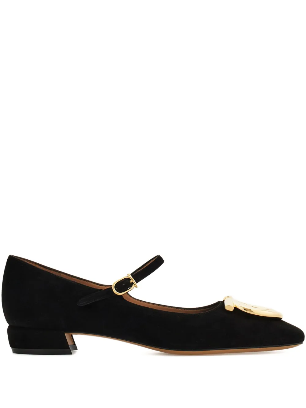 Balerini Ferragamo Gancini negru , curea la glezna cu catarama, varf patrat, brant interior cu log. 100% piele
