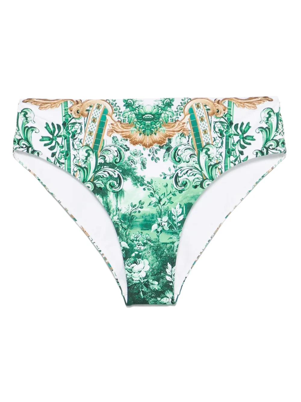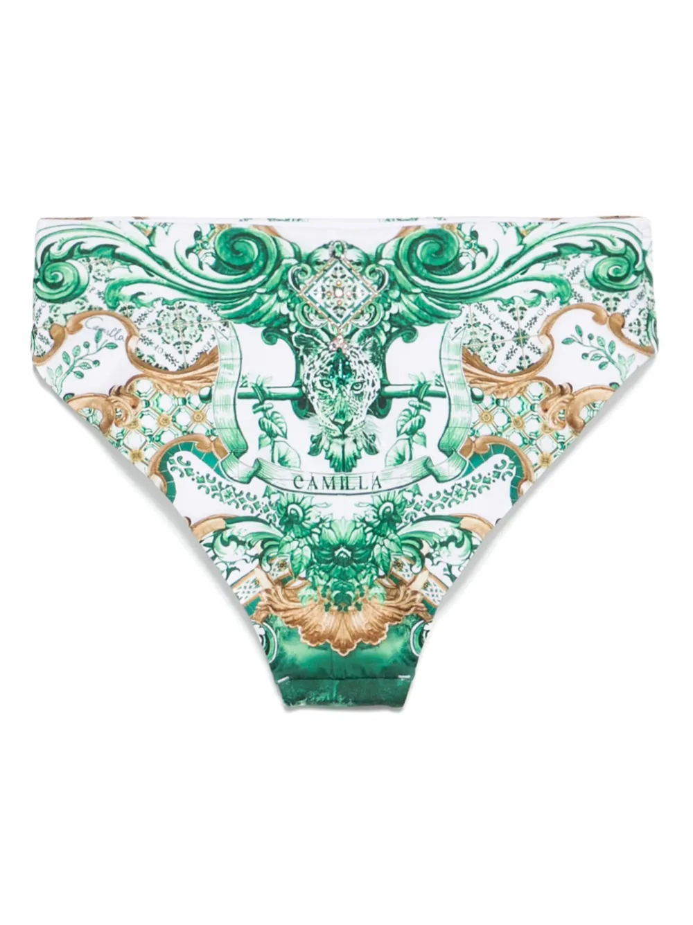 BIkini Camilla Corridor Of Calm alb, cu talie medie, model Camilla Corridor Of Calm imprimat si cristale sclipitoare aplicate. Aveti grija sa probati costumele de baie deasupra propriilor articole de imbracaminte. 90% poliamida reciclata; 10% elastan; 82% poliamida reciclata; 18% elastan.