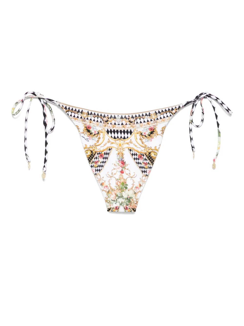 Bikini Camilla High-Waisted Bikini Bottoms alb, cu inchidere ajustabila pe laterale si grafica imprimata. Aveti grija sa probati costumele de baie deasupra propriilor articole de imbracaminte. 82% ECONYL; 18% elastan; 90% poliamida reciclata; 10% elastan.