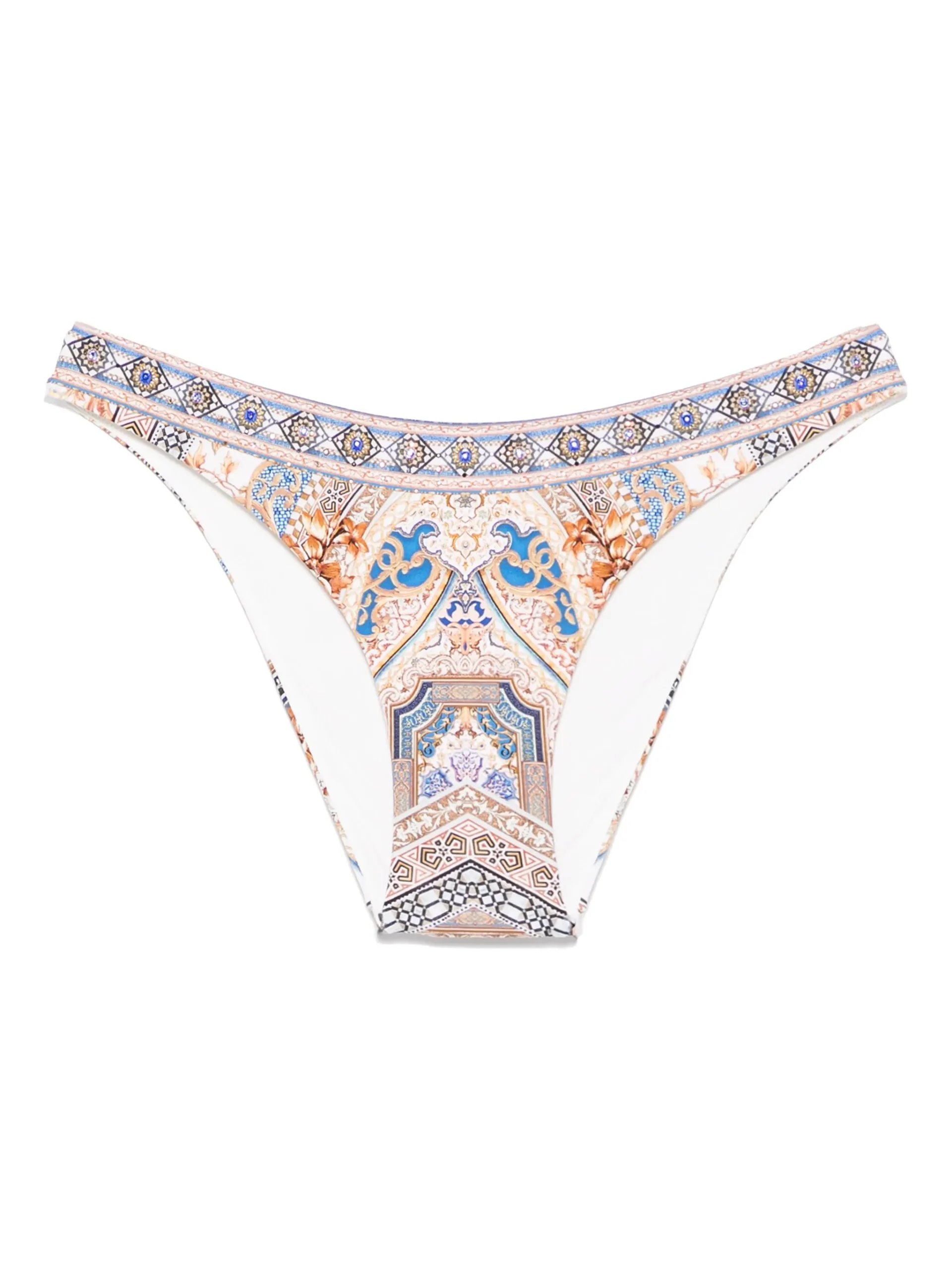 Bikini Camilla „Make me your Mosaic” multicolor, inchidere cu banda elastica, imprimeu pe intreaga suprafata, strasuri aplicate. 82% poliamida 18% elastan . Aveti grija sa probati costumele de baie deasupra propriilor articole de imbracaminte.