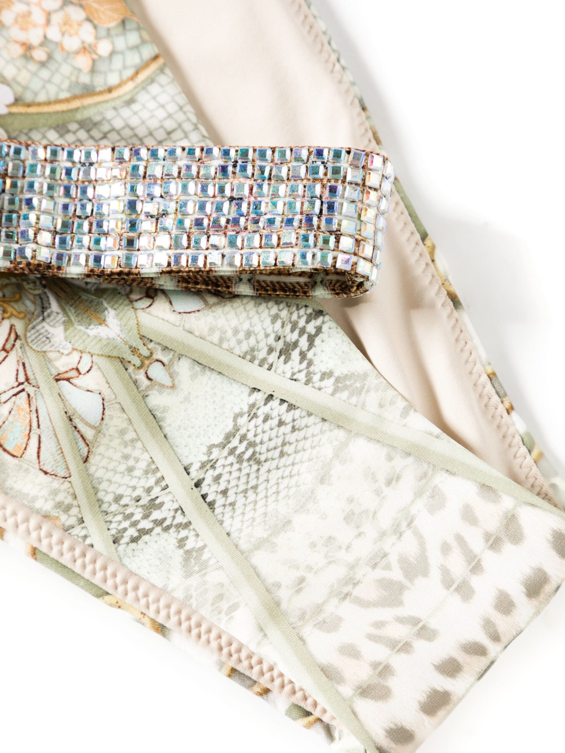 Bikini multicolori din poliamida, tip bandeau, grafica Camilla imprimata pe toata suprafata si cristale sclipitoare cusute pe laterale. 90% poliamida; 10% elastan; 82% poliamida; 18% elastan. Aveti grija sa probati costumele de baie deasupra propriilor articole de imbracaminte.