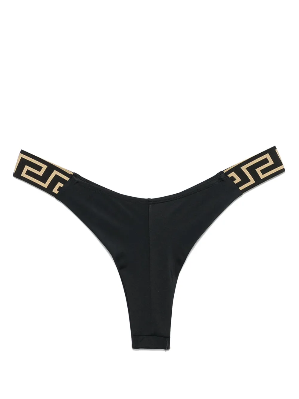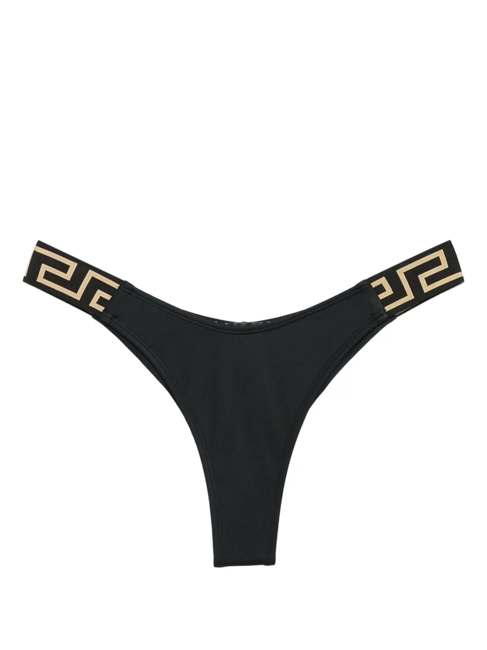 Bikini Versace Greca-Detailing negru, cu talie inalta decorati cu benzi elastice cu Greca Border in tesatura si captusiti integral. 78% nylon; 22% elastan. Aveti grija sa probati costumele de baie deasupra propriilor articole de imbracaminte.