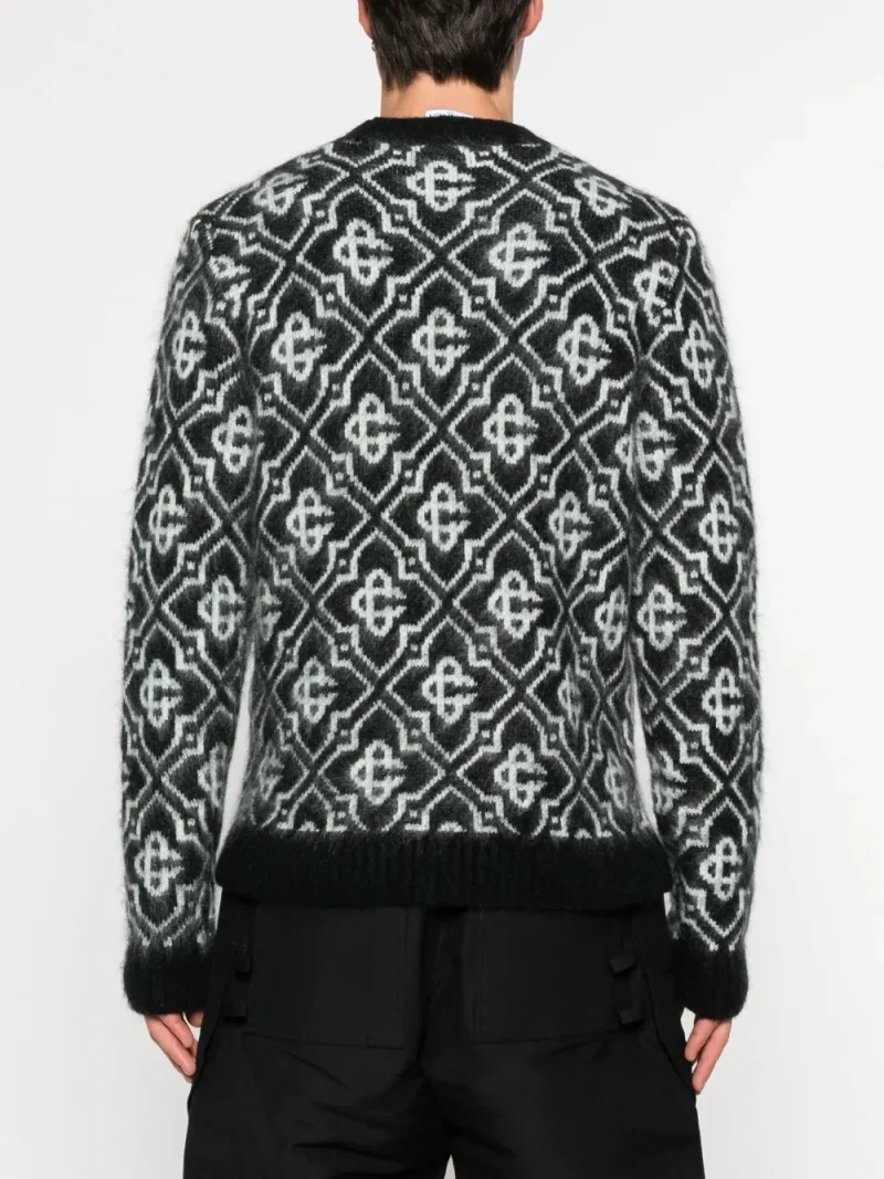 Bluza Casablanca monogram-pattern negru, guler rotund, maneci lungi, tiv elastic. 33% lana 33% mohair 28% poliamida 6% elastan