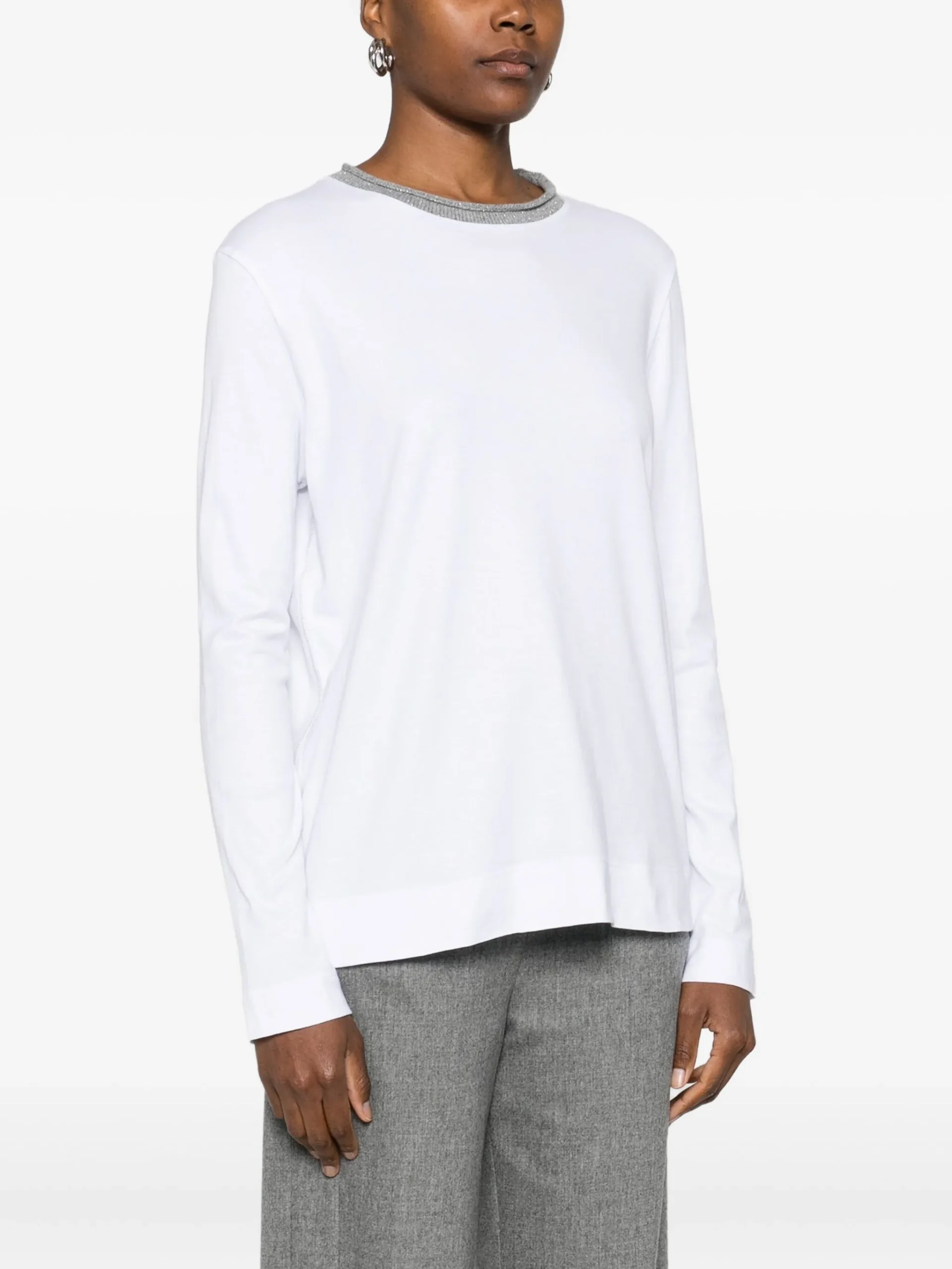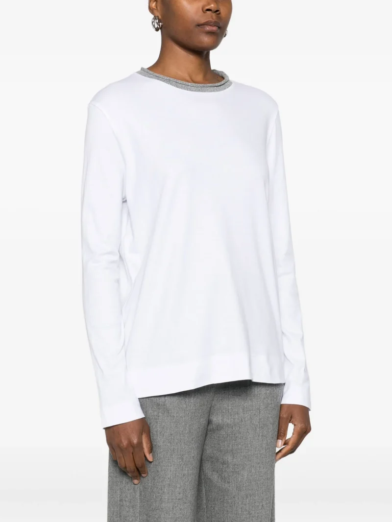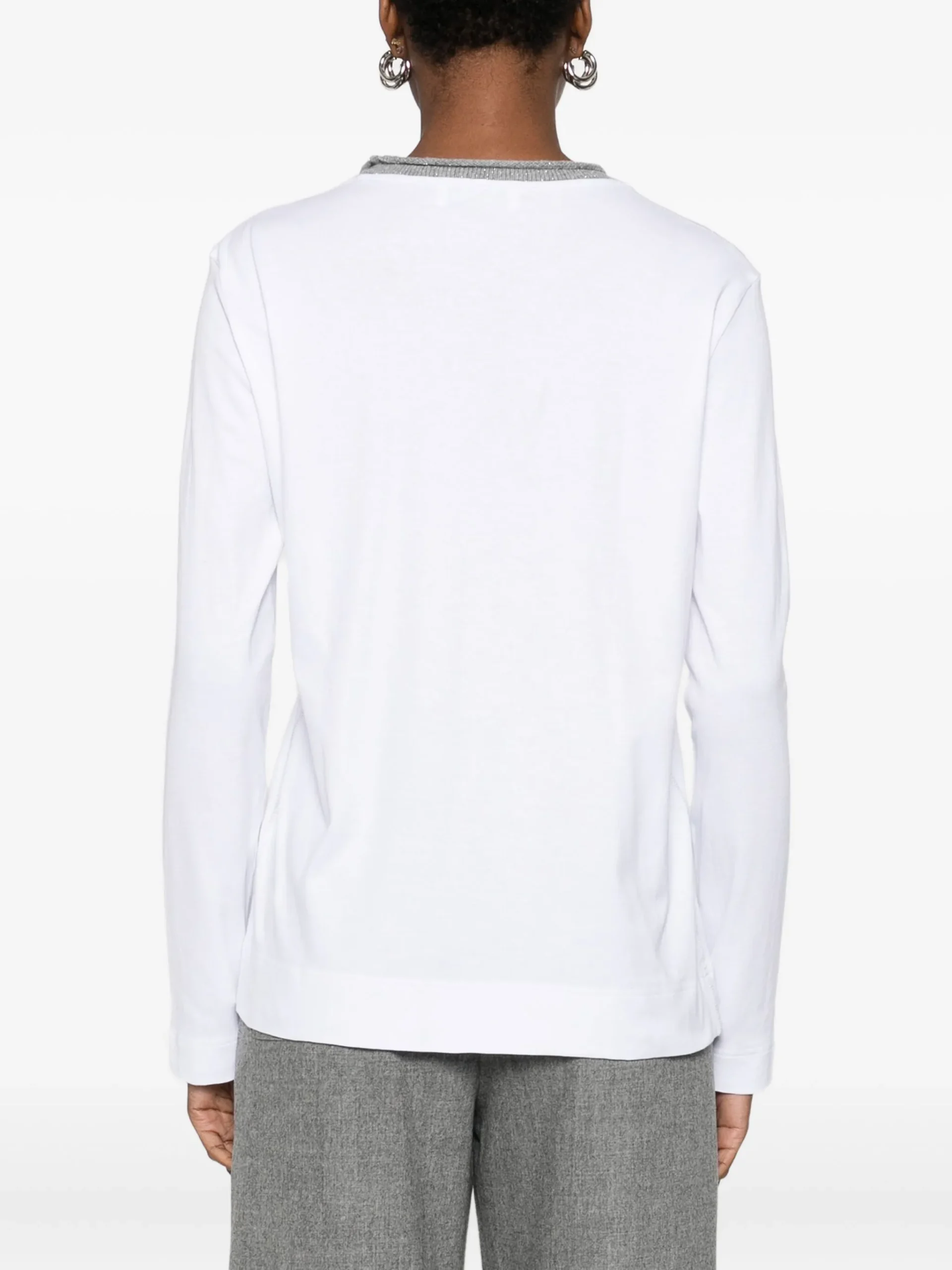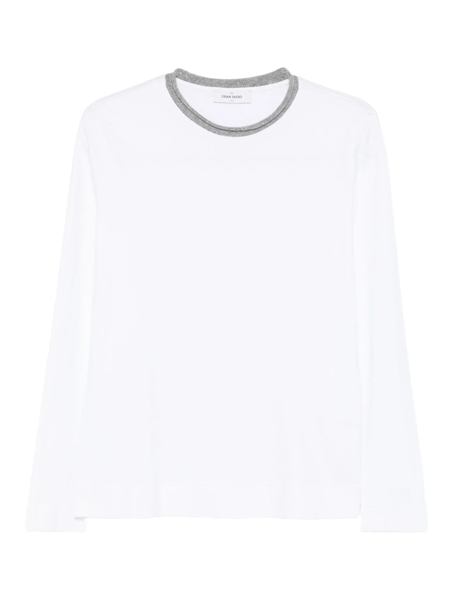 Bluza Gran Sasso round=neck alb din bumbac, cu guler rotund si maneci lungi.100% bumbac