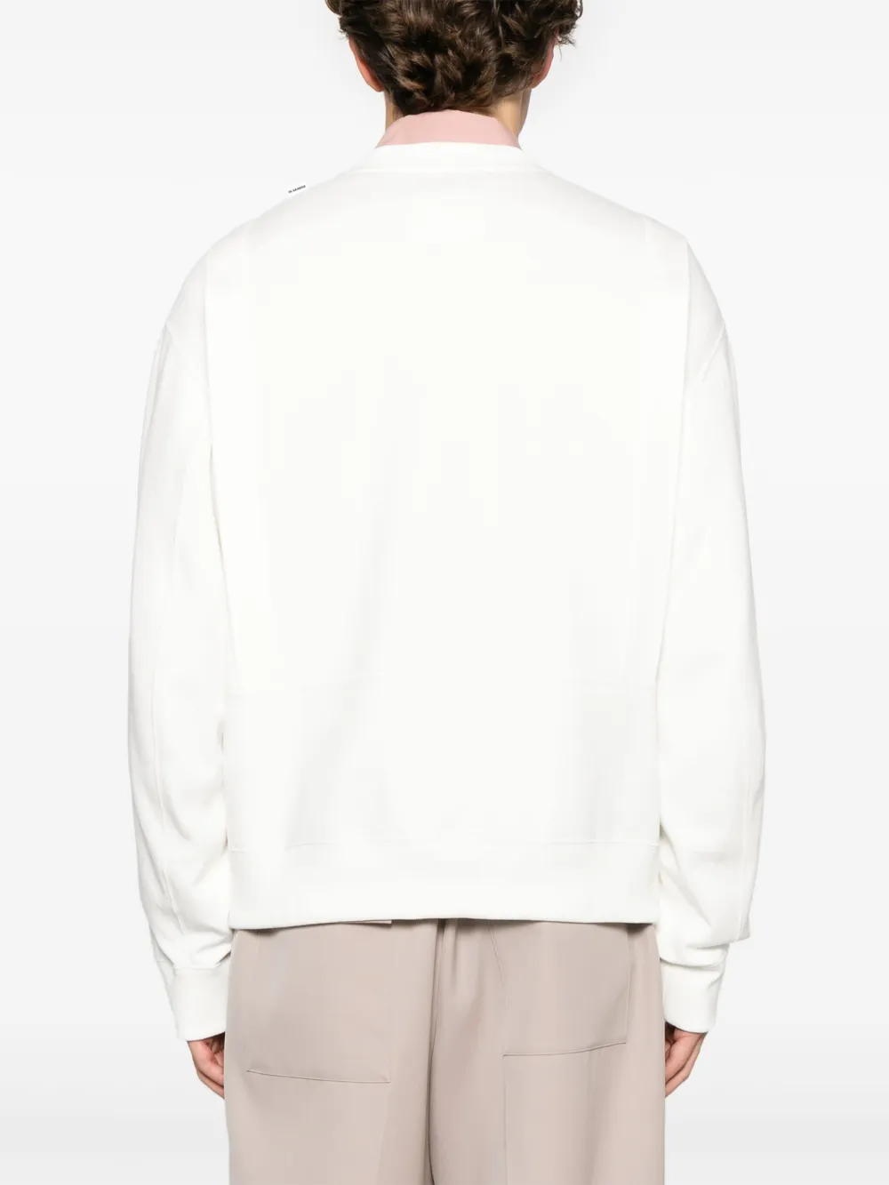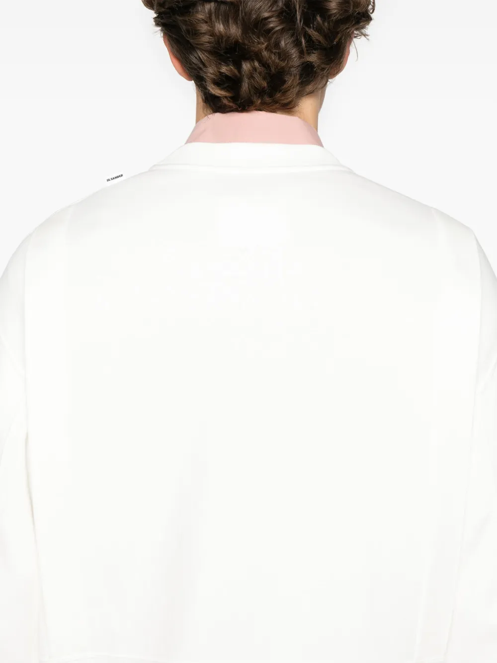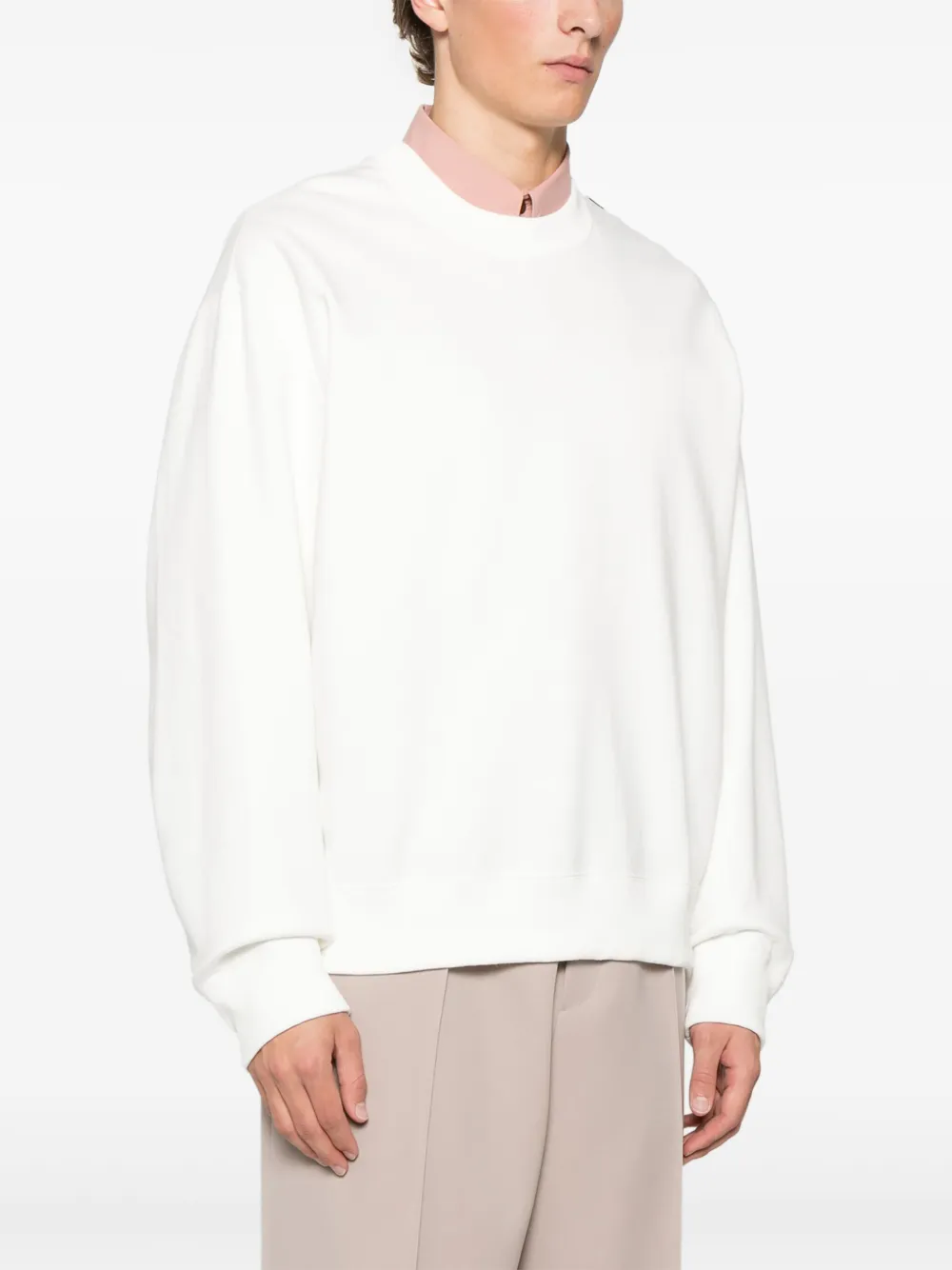 Bluza Jil Sander Crew-Neck alb, design minimalist din bumbac, cu guler crew-neck, maneci lungi, mansete elastice si tiv drept. Potrivita pentru sezonul primavara/vara. 100% bumbac.