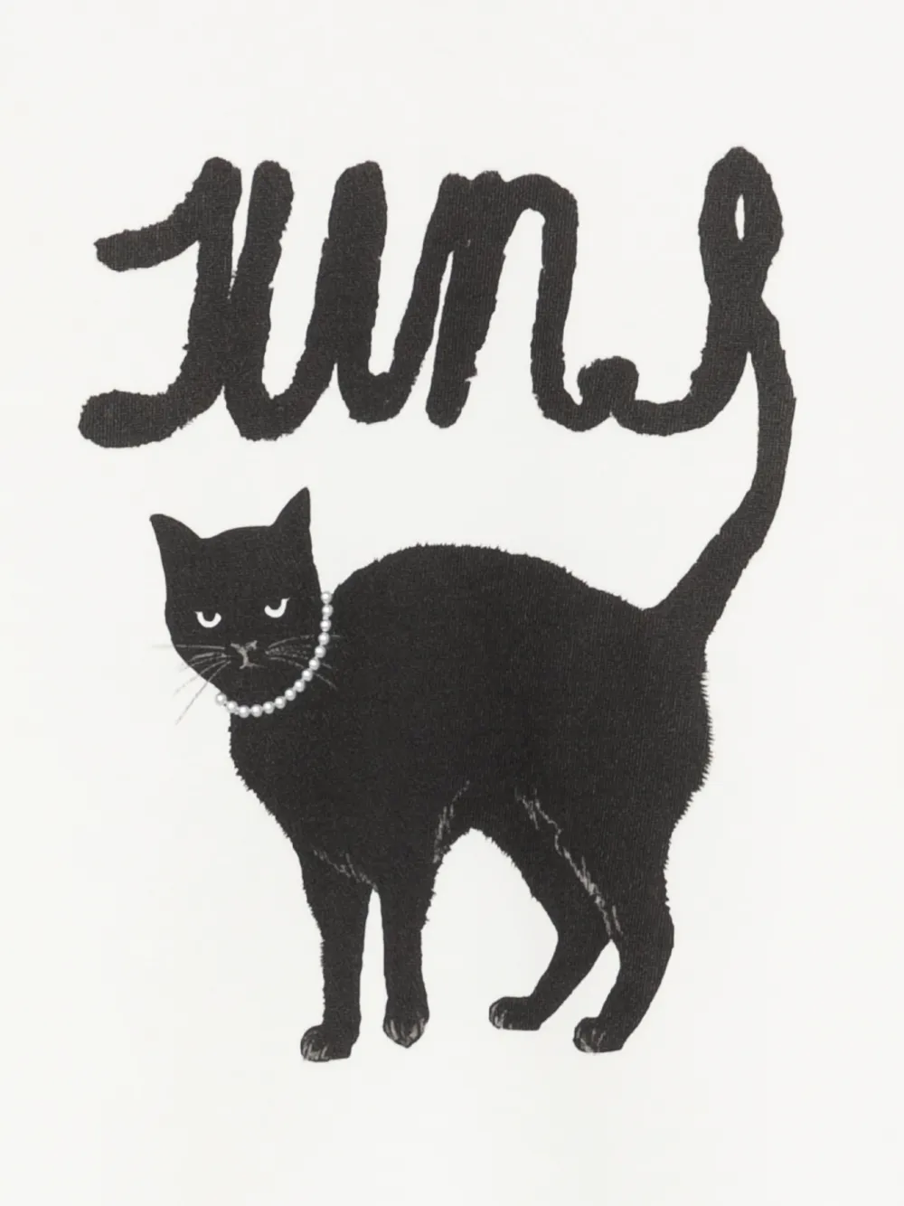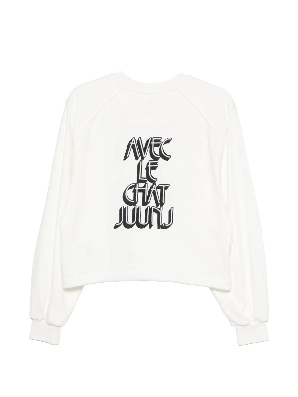 Bluza JUUN.J Cat Print alb, realizata din bumbac, cu umeri cazuti, maneci lungi, grafica Cat imprimata ca element central, logo dispus fluid, mesaj „Avec le chat” pe spate si tiv drept. Potrivit pentru sezonul primavara/vara. 100% bumbac,