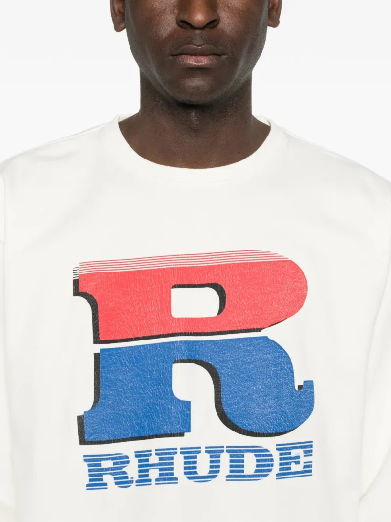 Bluza RHUDE long-sleeve alba, realizata din bumbac, cu imprimeu logo, maneci lungi si guler rotund. 100% bumbac