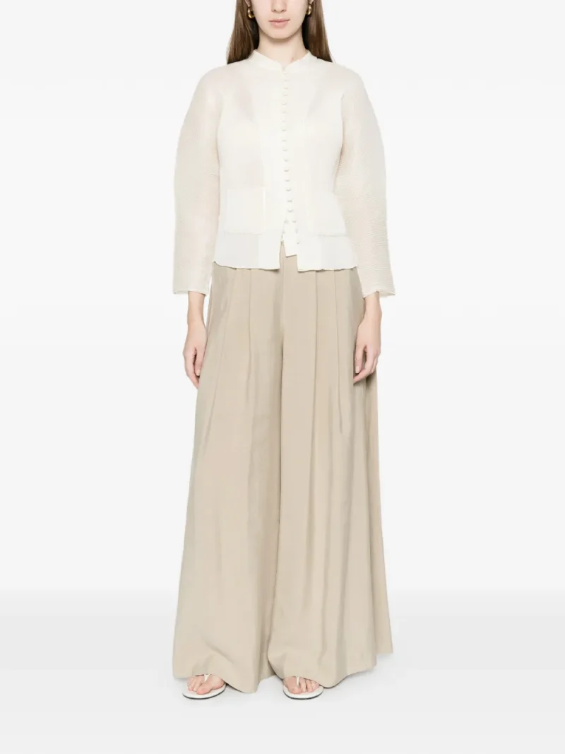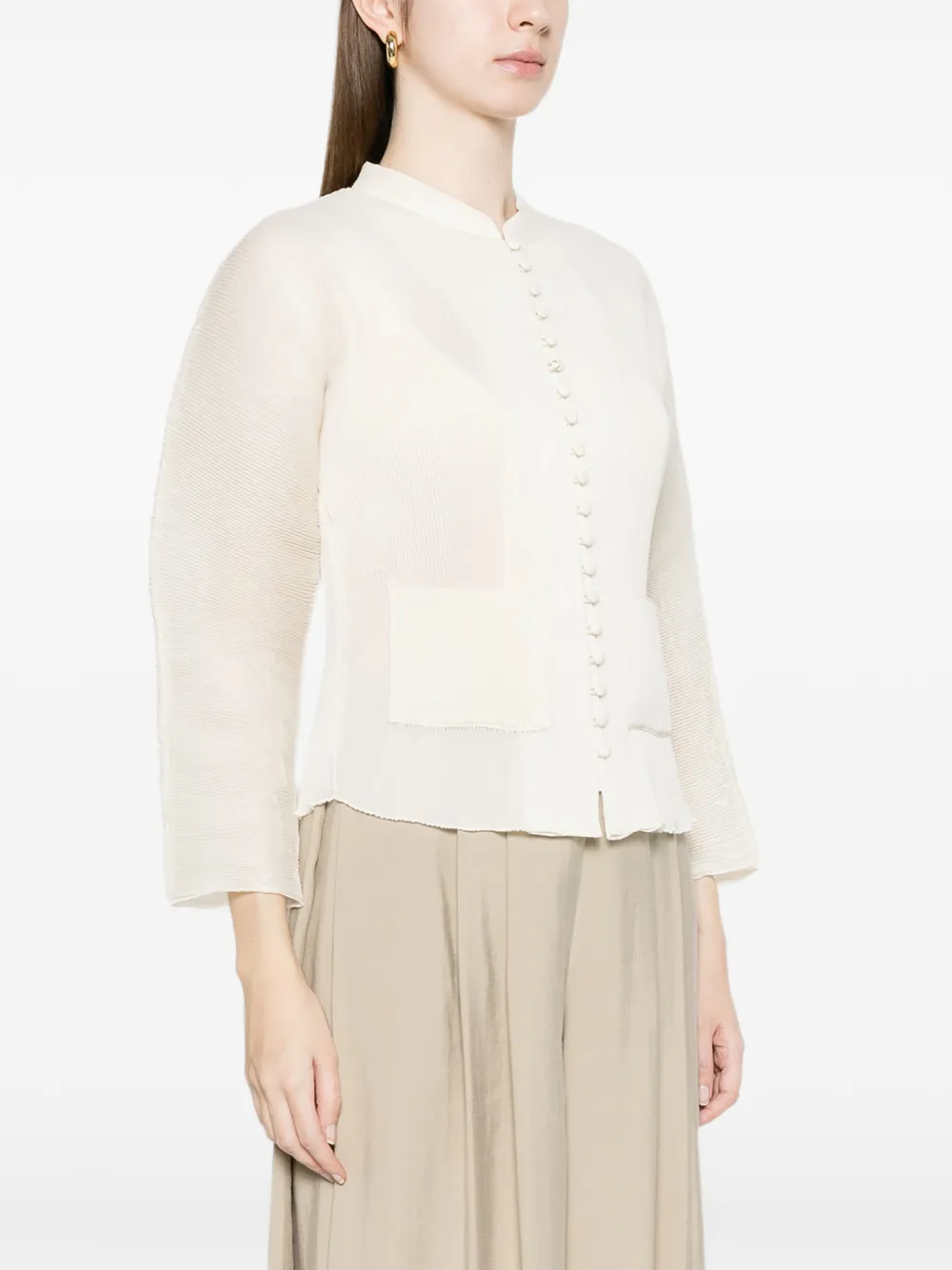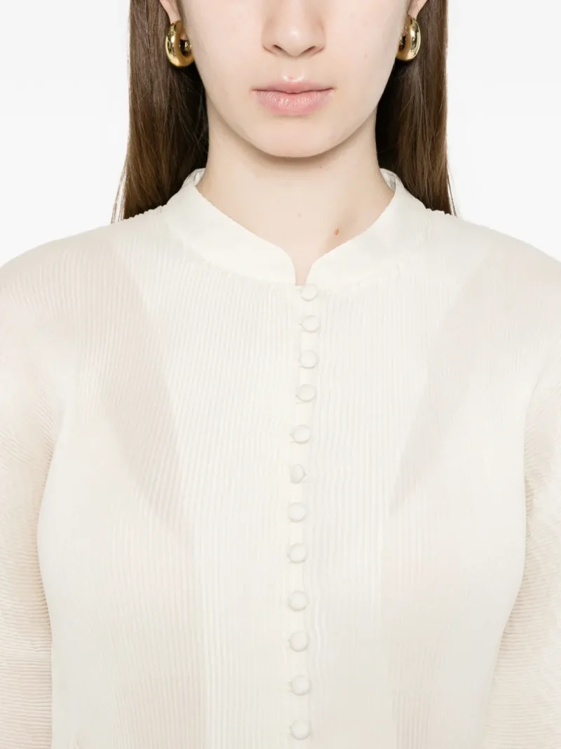 Bluza Rohe Button Patch-Pocket ecru, cu guler tunica, inchidere cu nasturi, buzunare aplicate lateral, maneci lungi si plisata integral. Potrivita pentru sezonul primavara/vara. 100% poliester.