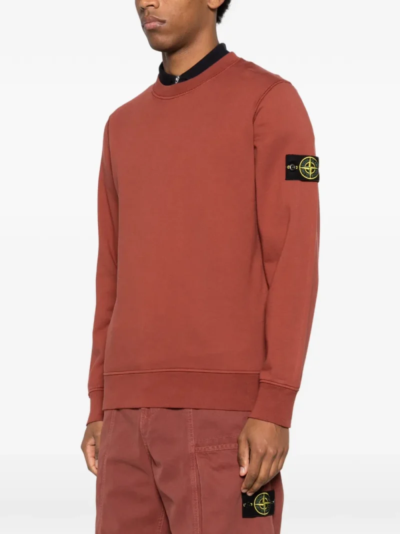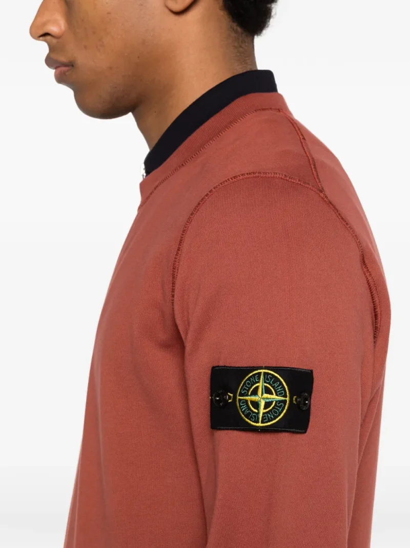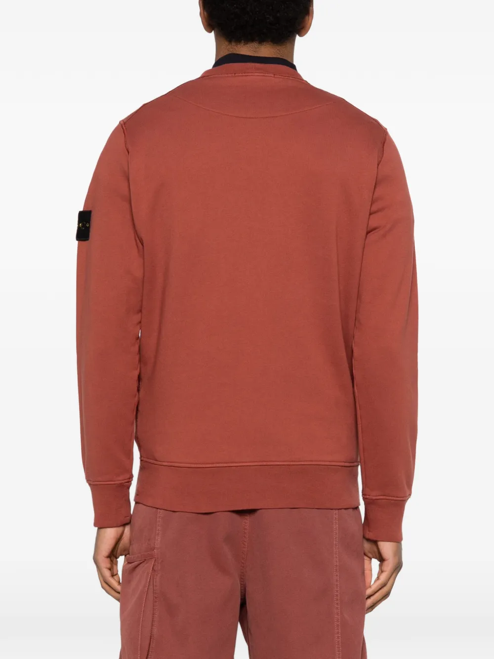 Bluza Stone Island Crew-neck brick, din bumbac, cu guler crewneck, maneci lungi, mansete elastice, cusaturi in relief, logo Compass Badge detasabil si tiv elastiv drept. Potrivita pentru seoznul primavara/vara. 100% bumbac.