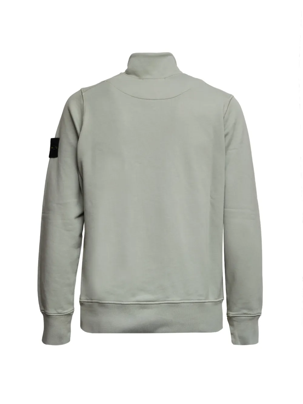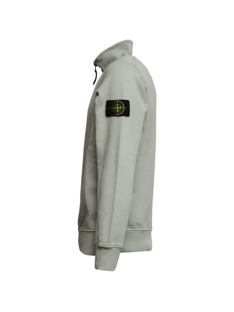 Bluza Stone Island Zip Fleece gri menta, cu guler crewneck, maneci lungi, mansete elastice, logo Stone Island detasabil si tiv elastic drept. Potrivita pentru sezonul primavara/vara. 100% bumbac.