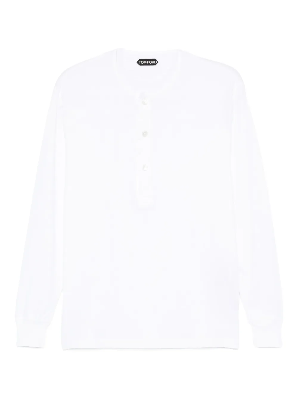 Bluza TOM FORD Long-Sleeve Button-Placket alb, din bumbac, cu guler rotund, inchidere partiala cu nasturi, maneci lungi, tesatura ribbed si tiv drept. Potrivita pentru sezonul toamna/iarna. 95% bumbac; 5% elastan. 67% lyocell 33% bumbac
