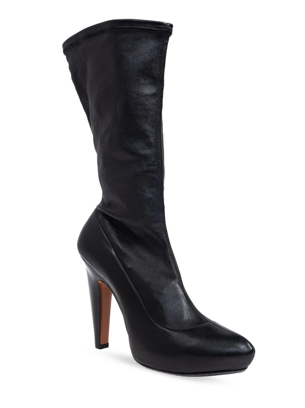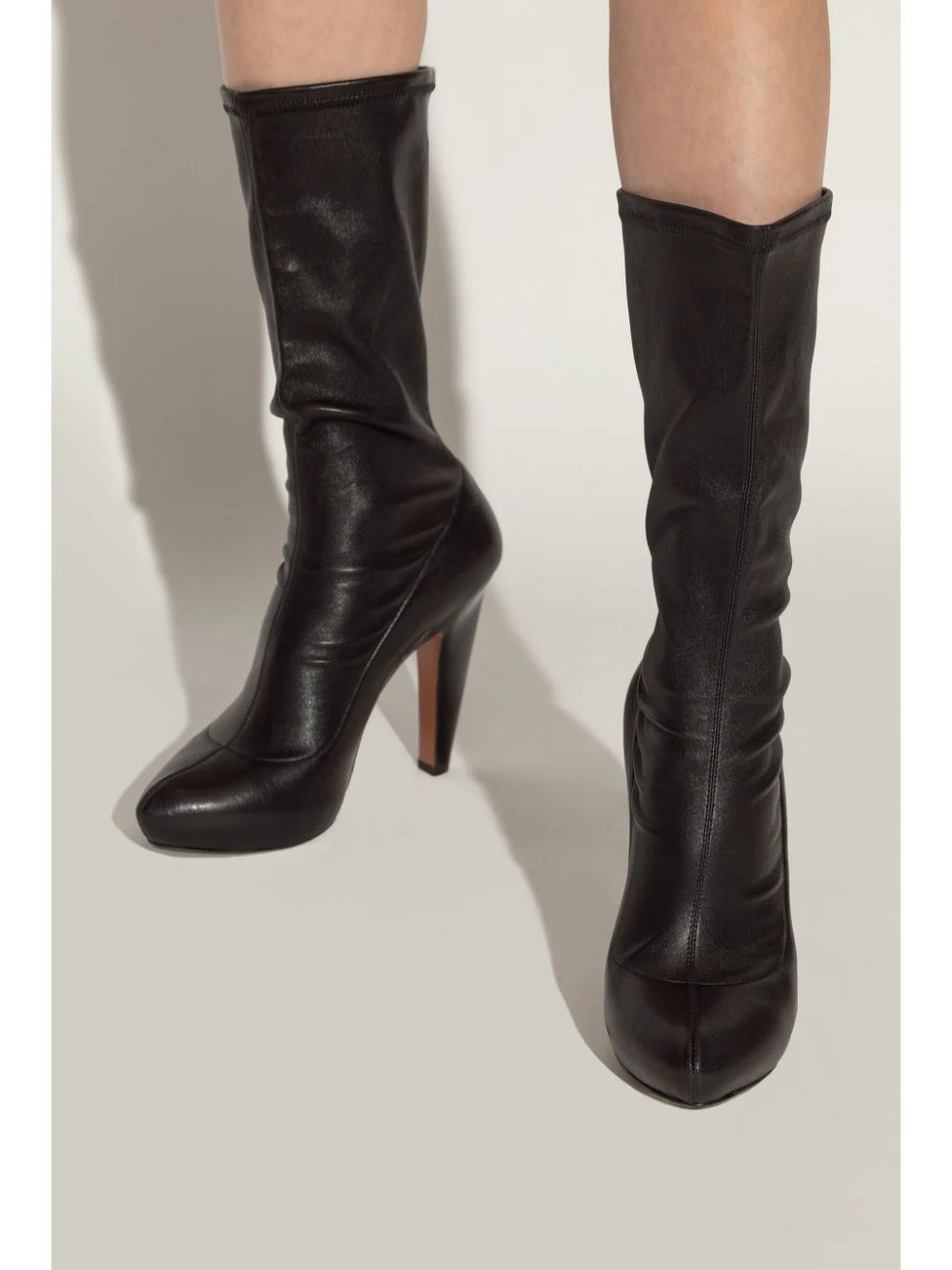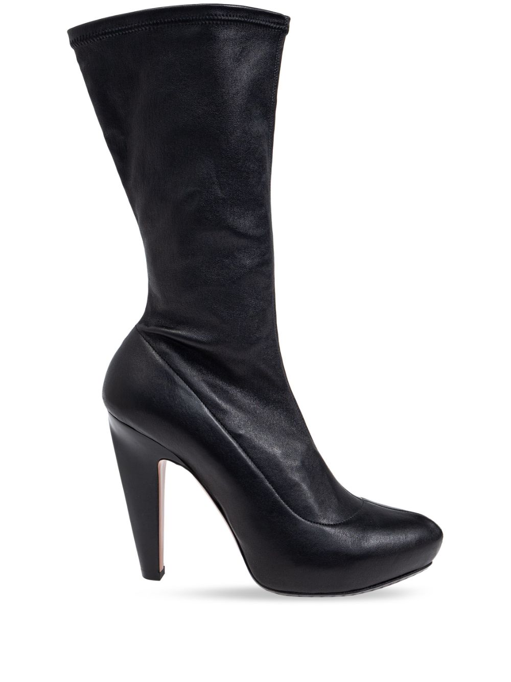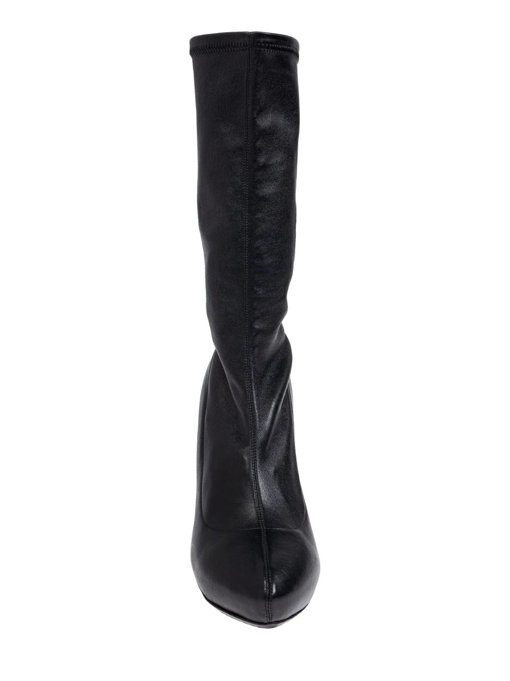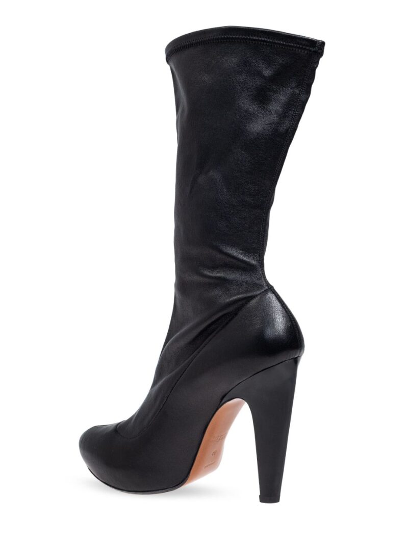 Botine negre din piele de miel, design din panouri, cu profil inalt, fara inchidere, captuseala din piele, talpa inclinata, bot ascutit si toc de 12.5 cm. 100% piele de miel; 100% piele de miel; 100% piele.