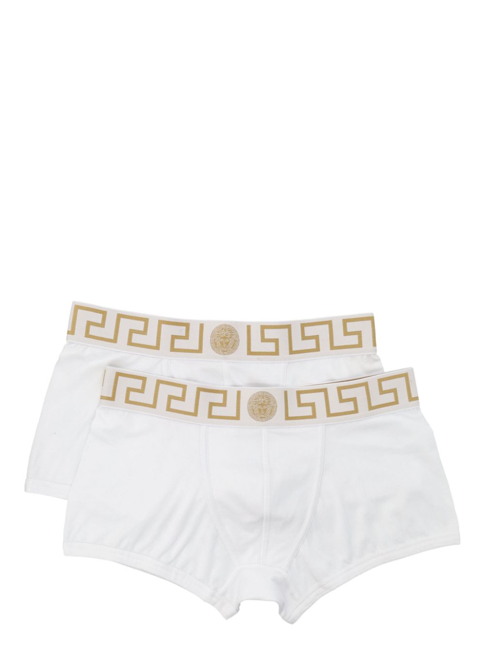Boxeri Versace Medusa-Jacquard Briefs (2 set) alb, din bumbac, set de doi, cu logo si model imprimate pe banda elastica. 94% bumbac; 6% elastan. Aveti grija sa probati lenjeria intima deasupra propriilor articole de imbracaminte. 94% bumbac; 4% elastan.