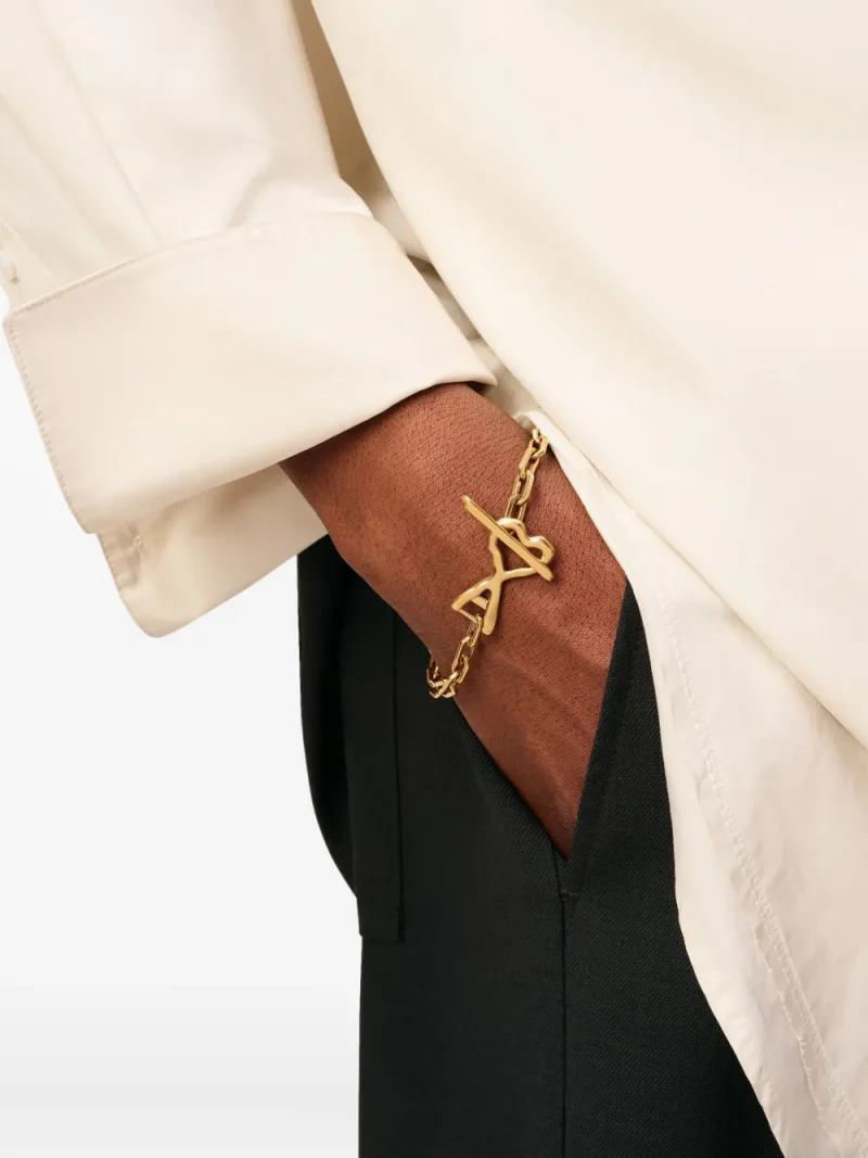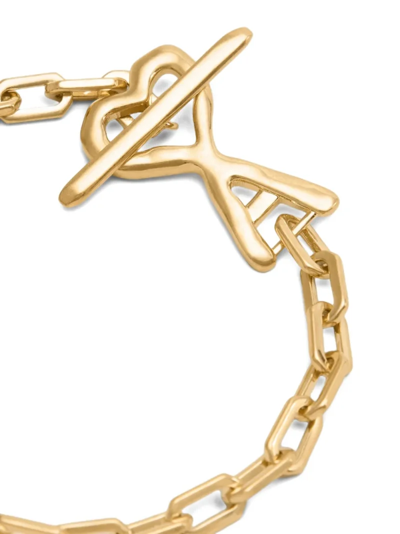 Bratara Ami Paris Ami De Coeur Hammered auriu, model format din zale masive cu efect mat, decoratiune Ami de Couer si inchidere carabina. 100% alama.
