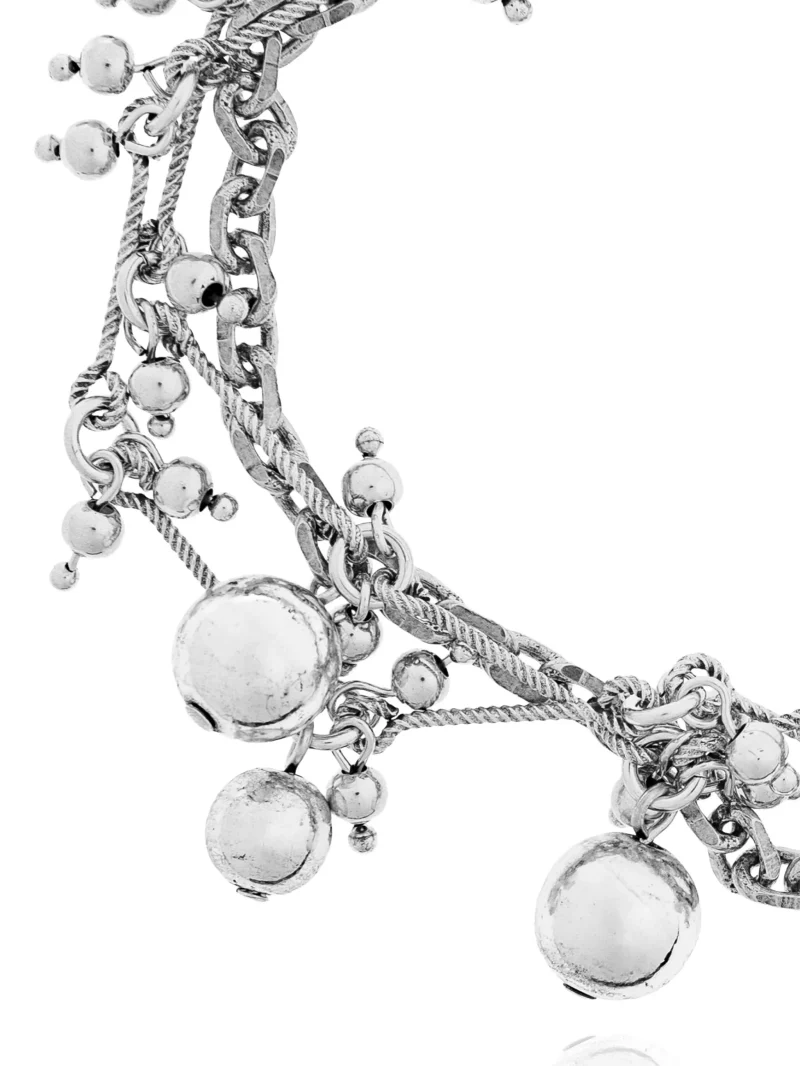Bratara Isabel Marant argintie, cu detalii tip lant, aplicatii din margele, placuta cu logo si inchidere cu inel arcuit. 100% alama