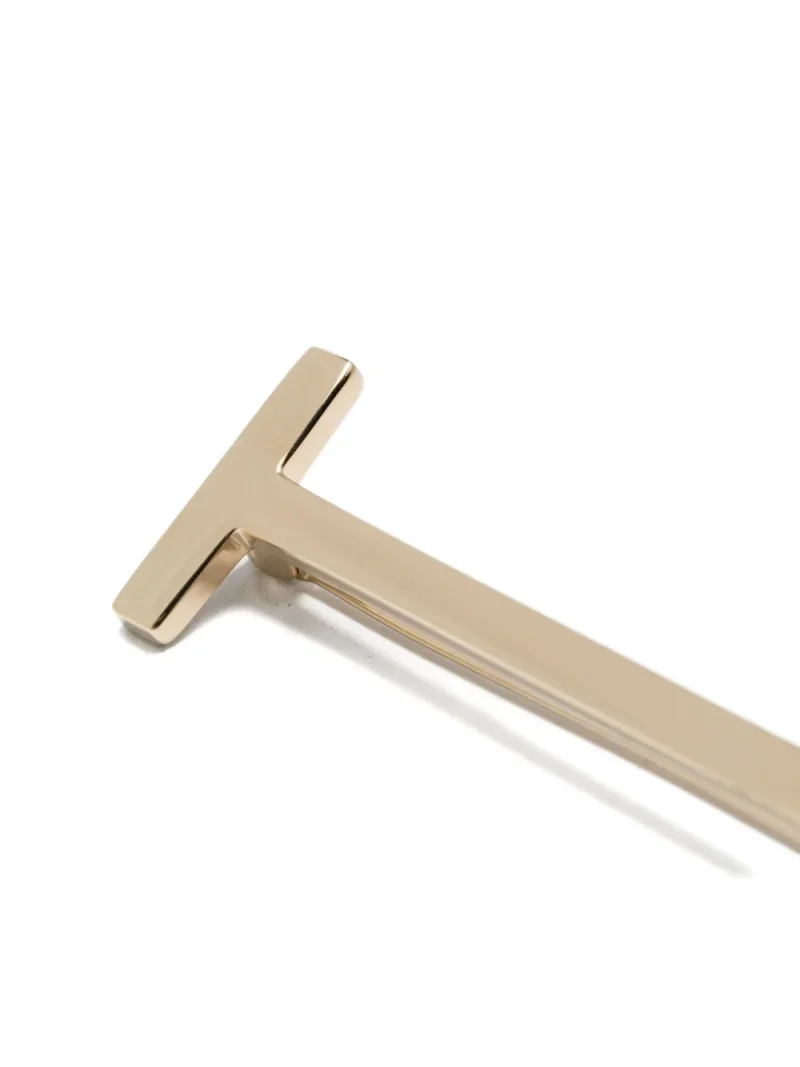 Brosa Tom Ford T-bar auriu, din argint placat cu aur, in forma de T, polisata si cu inchidere pin. 100% argint placat cu aur. Utilizarea normala zilnica si agenții externi pot reduce luciul suprafetei. Pentru intretinere, utilizati produse specifice, neabrazive, special concepute pentru curatarea bijuteriilor.