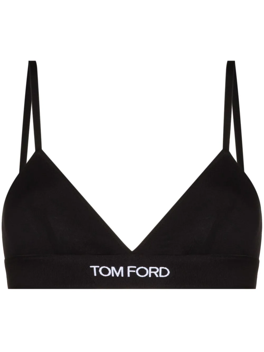 Bustiera TOM FORD Logo Waistband negru, din modal, cu decolteu in V, cupe triunghi si banda elastica cu logo Tom Ford in tesatura. 97% modal; 3% elastan. Aveti grija sa probati produsul deasupra propriilor articole de imbracaminte.