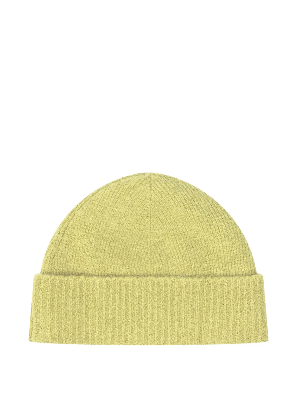 Caciula Ami Paris Ami de Coeur Beanie galben, tricotata din lana, cu tesatura ribbed si logo Ami aplicat pe centru. 50% alpaca; 25% lana; 23% poliamida; 2% elastan.