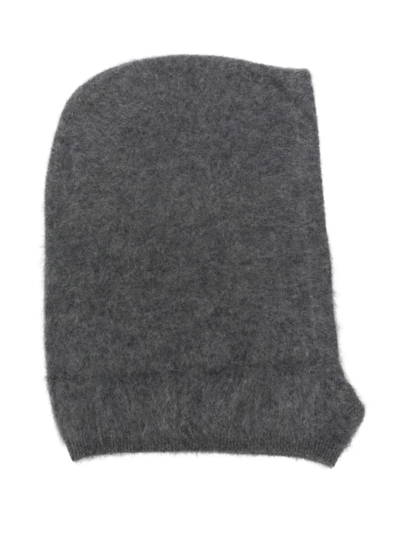 Caciula Lisa Yang Brushed-Effect Cashmere Balaclava gri, cu guler integrat, tricotata din casmir si cu efect brushed. 100% casmir.