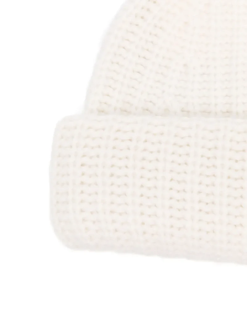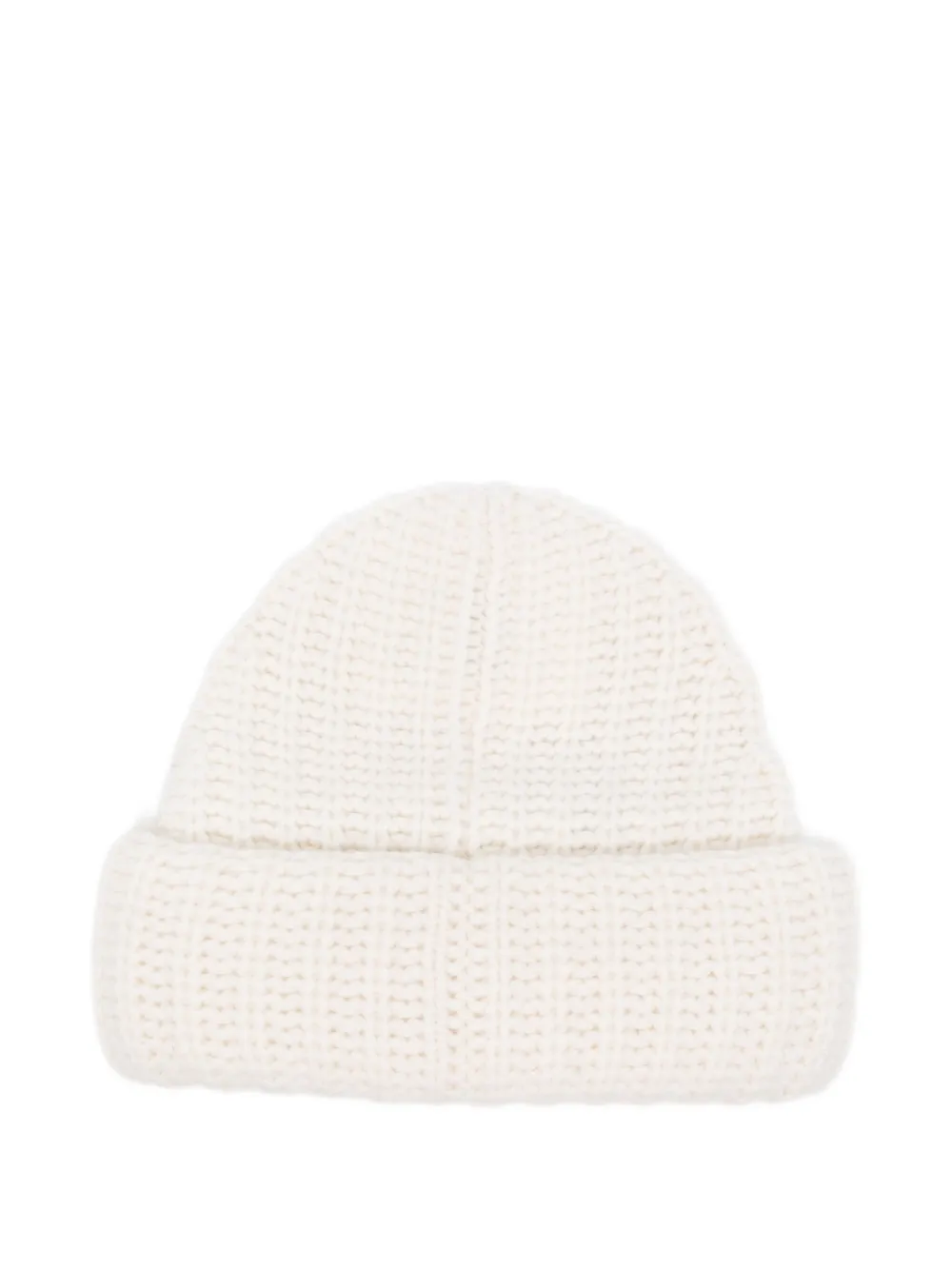 Caciula Lisa Yang Ribbed bej, tricotata din casmir, cu textura ribbed si bata intoarsa. 100% casmir.