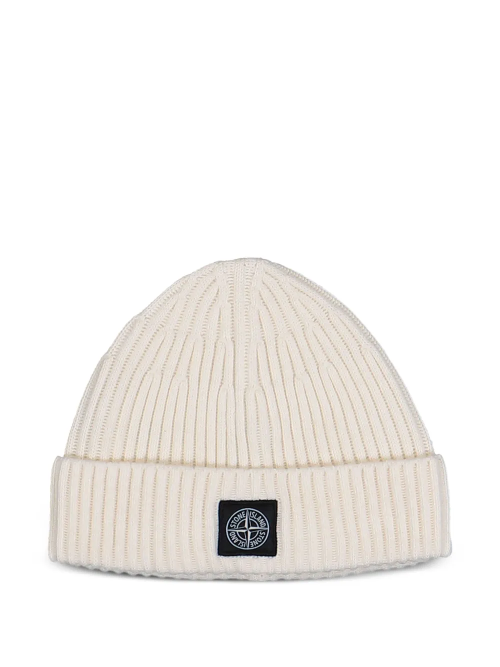 Caciula Stone Island Ribbed Logo-Patch Beanie ecru, din lana premium, cu tesatura ribbed si eticheta cu logo cusuta. 100% lana.