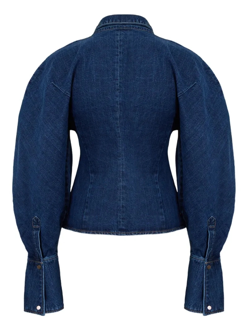 Camasa A.W.A.K.E. Mode balloon-sleeve denim albastru