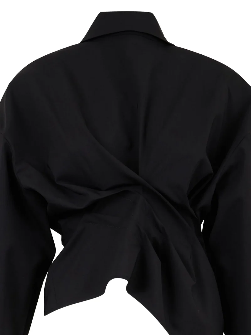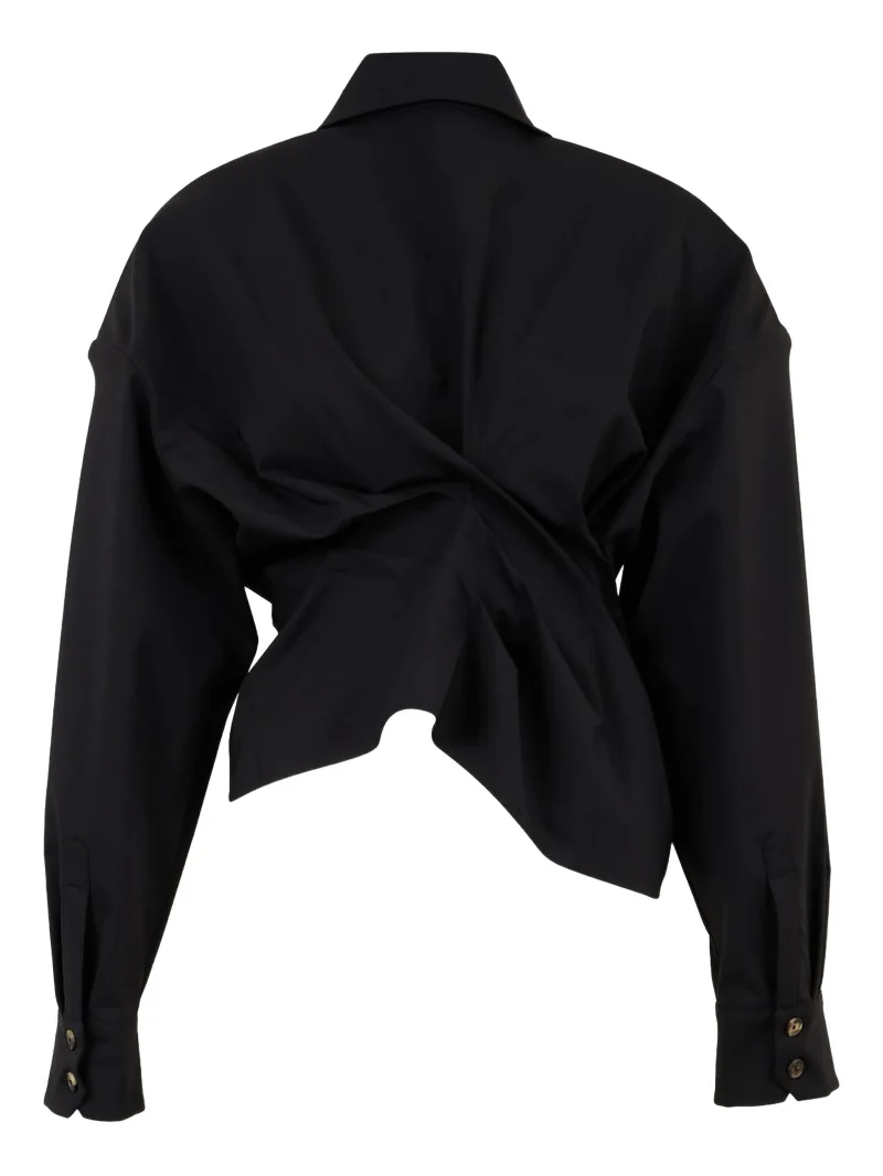 Camasa A.W.A.K.E. Mode neagra, inchidere cu nasturi, maneci lungi, mansete cu nasturi si detaliu rasucit in partea frontala. Potrivita pentru sezonul toamna/iarna.98% lana 2% elastan