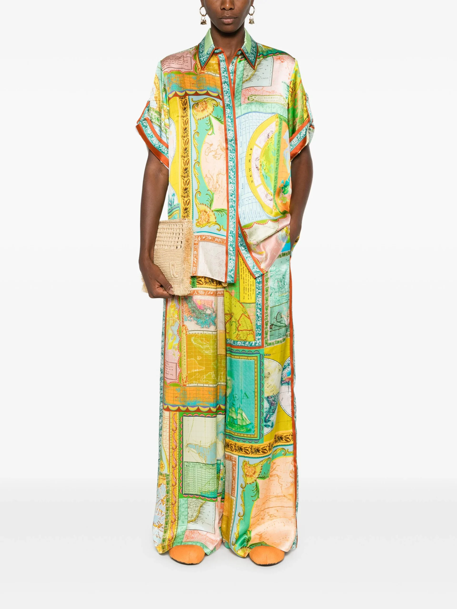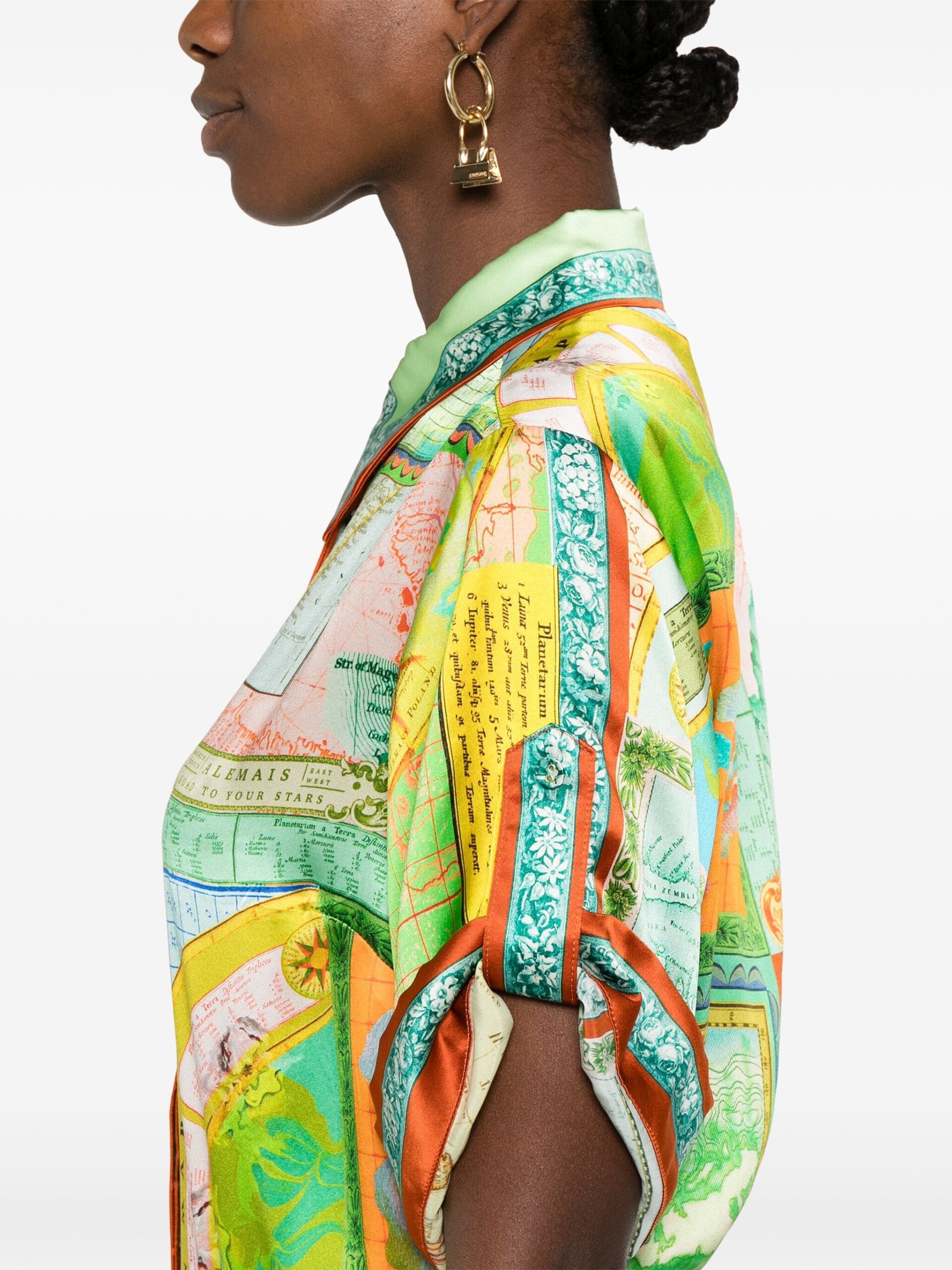 Camasa Alemais Atlas multicolor din matase, cu guler clasic, inchidere cu nasturi , maneci medii, grafica imprimata pe toata suprafata si tiv drept. Potrivita pentru sezonul primavara/vara. 100% matase.