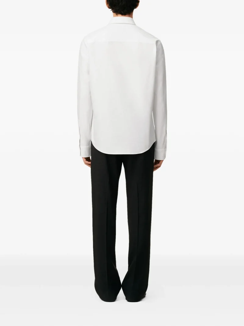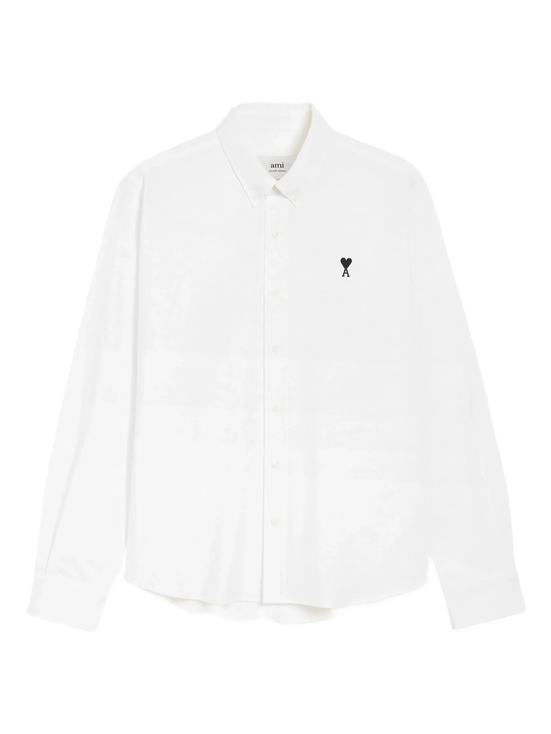 Camasa AMI Paris Ami de Coeur alb, cu inchidere frontala cu nasturi, logo brodat la piept, maneci lungi, mansete cu nasturi si tiv drept. Potrivita pentru sezonul primavara/vara. 100% bumbac