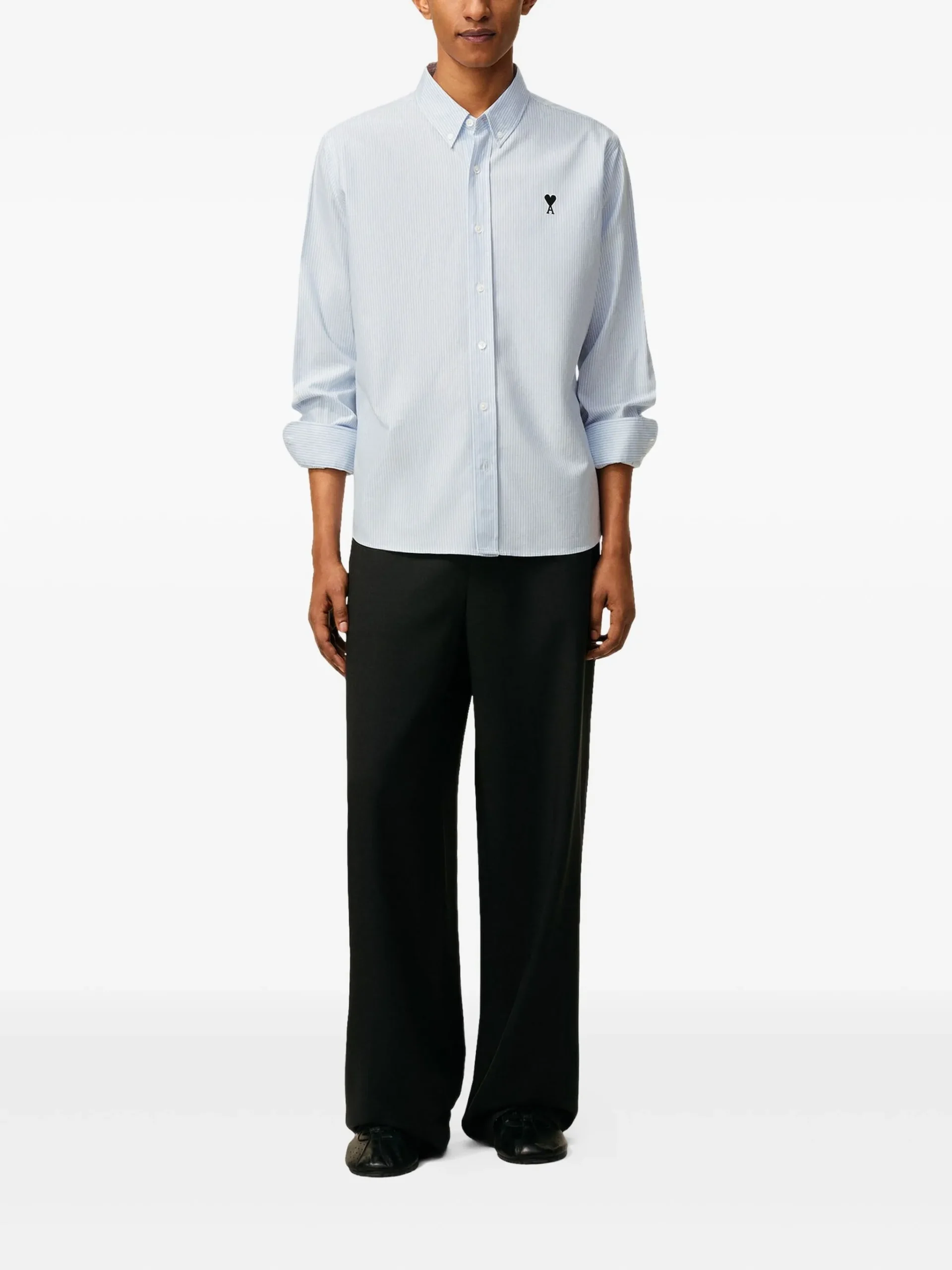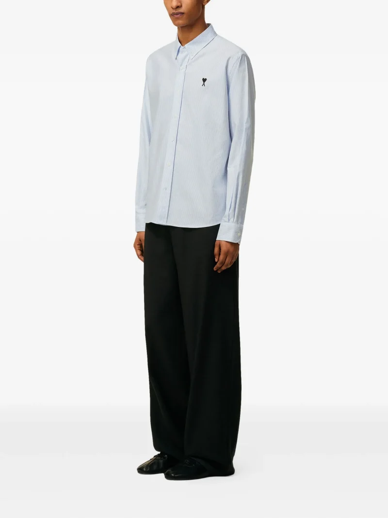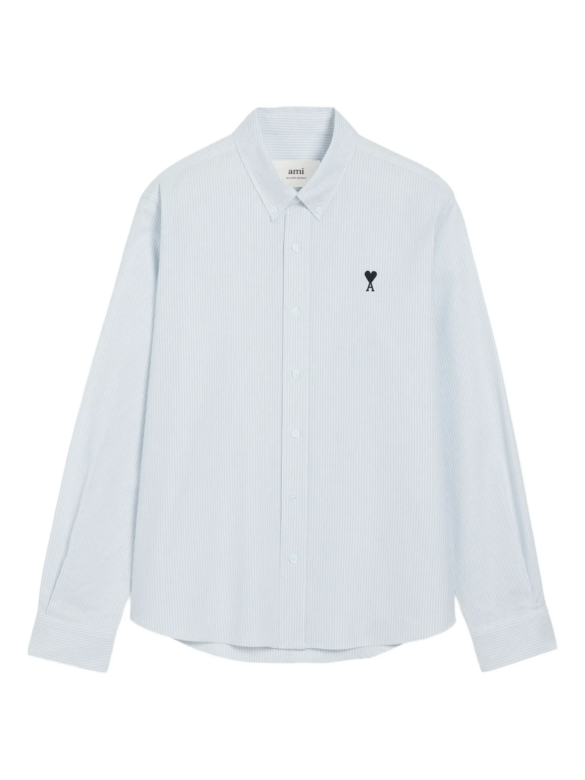 Camasa Ami Paris Ami de Coeur albastru, cu inchidere frontala cu nasturi, logo brodat la piept, maneci lungi, mansete cu nasturi si tiv drept. Potrivita pentru sezonul primavara/vara. 100% bumbac.