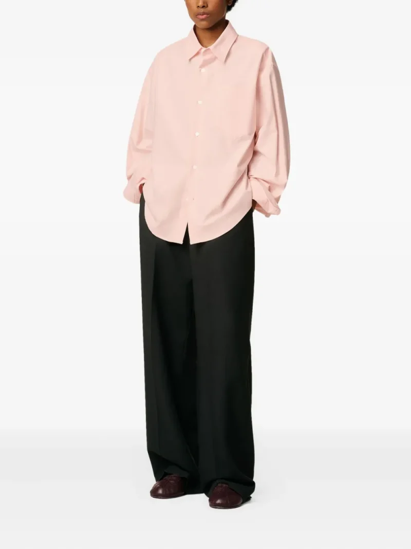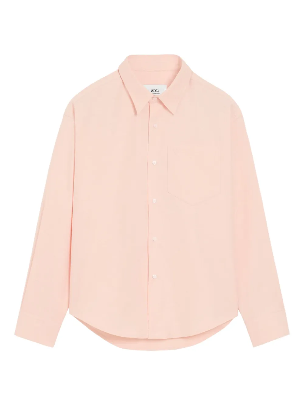 Camasa Ami Paris Ami De Coeur Embossed Cotton Boxy roz, din bumbac, cu guler clasic, inchidere cu nasturi, maneci lungi, mansete cu nasturi, buzunar la piept si tiv curbat. Potrivita pentru sezonul toamna/iarna. 100% bumbac.
