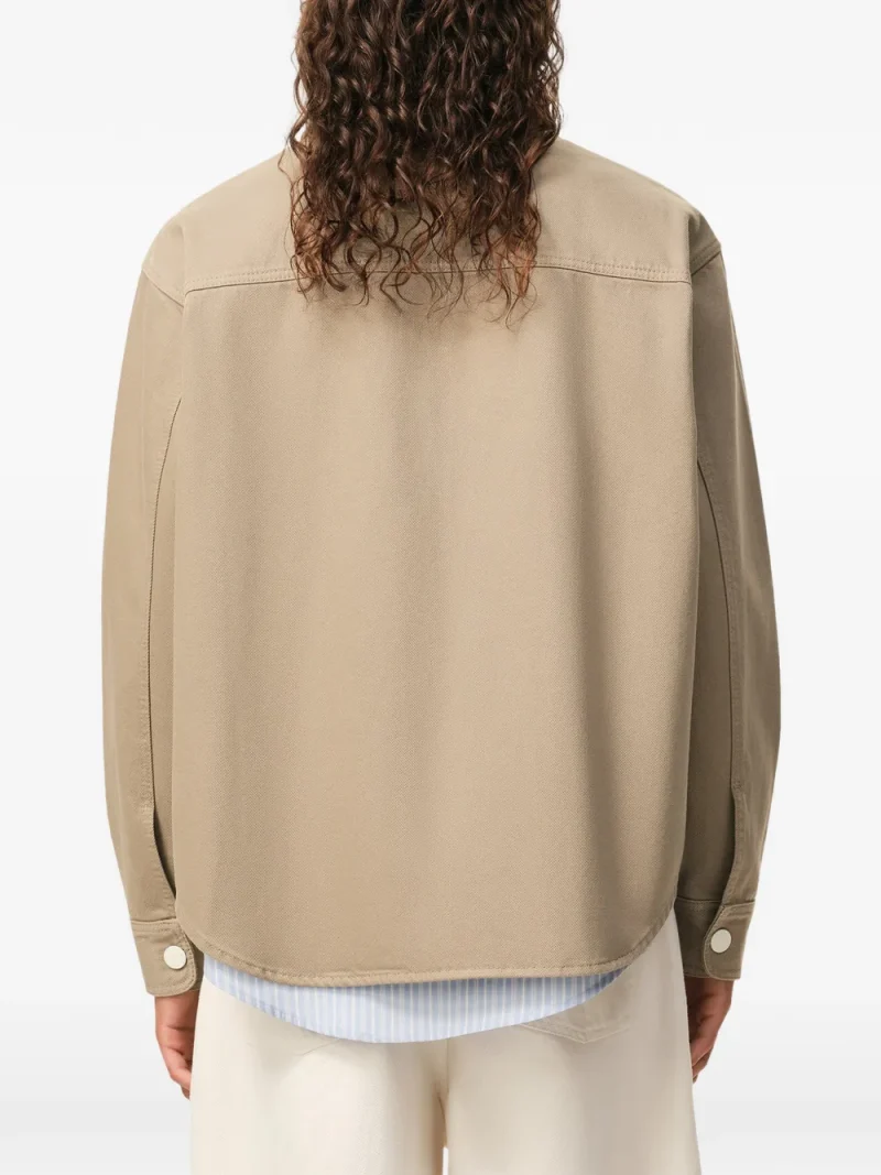 Camasa AMI Paris Logo-Patch bej, realizata din bumbac, tip oversized, cu guler clasic, inchidere cu capse in contrast, maneci lungi, mansete elastice, logo aplicat la piept si tiv drept. Potrivita pentru sezonul primavara/vara. 100% bumbac.