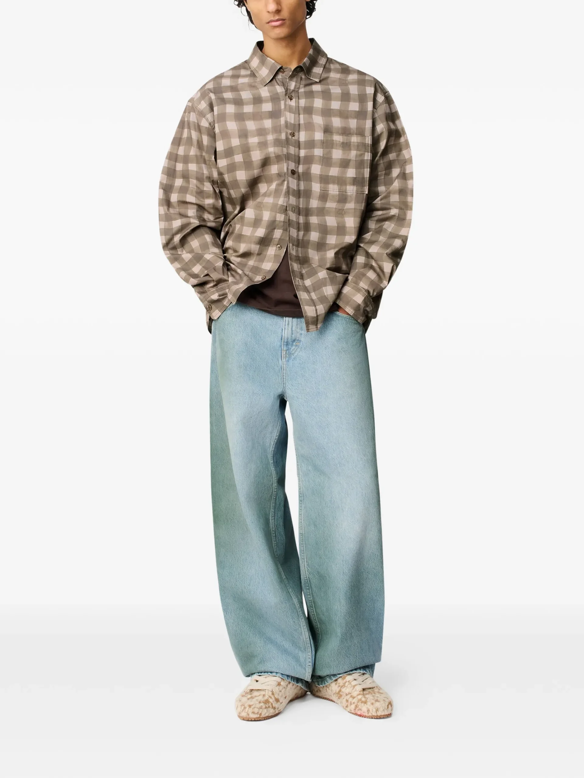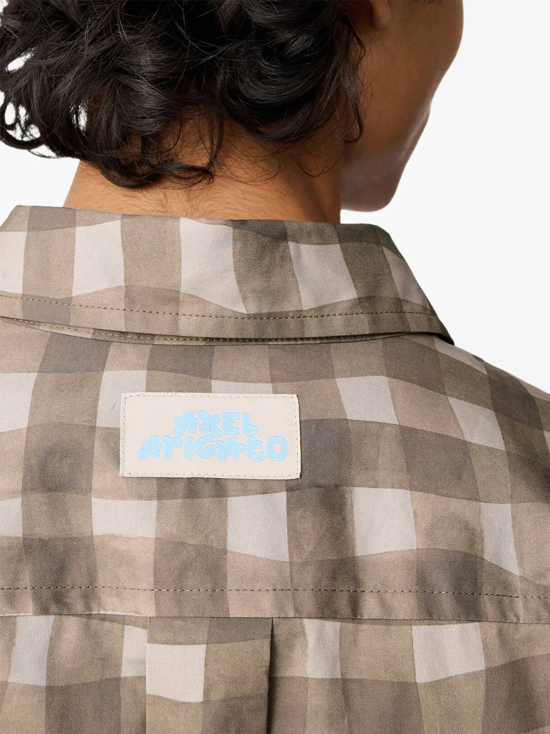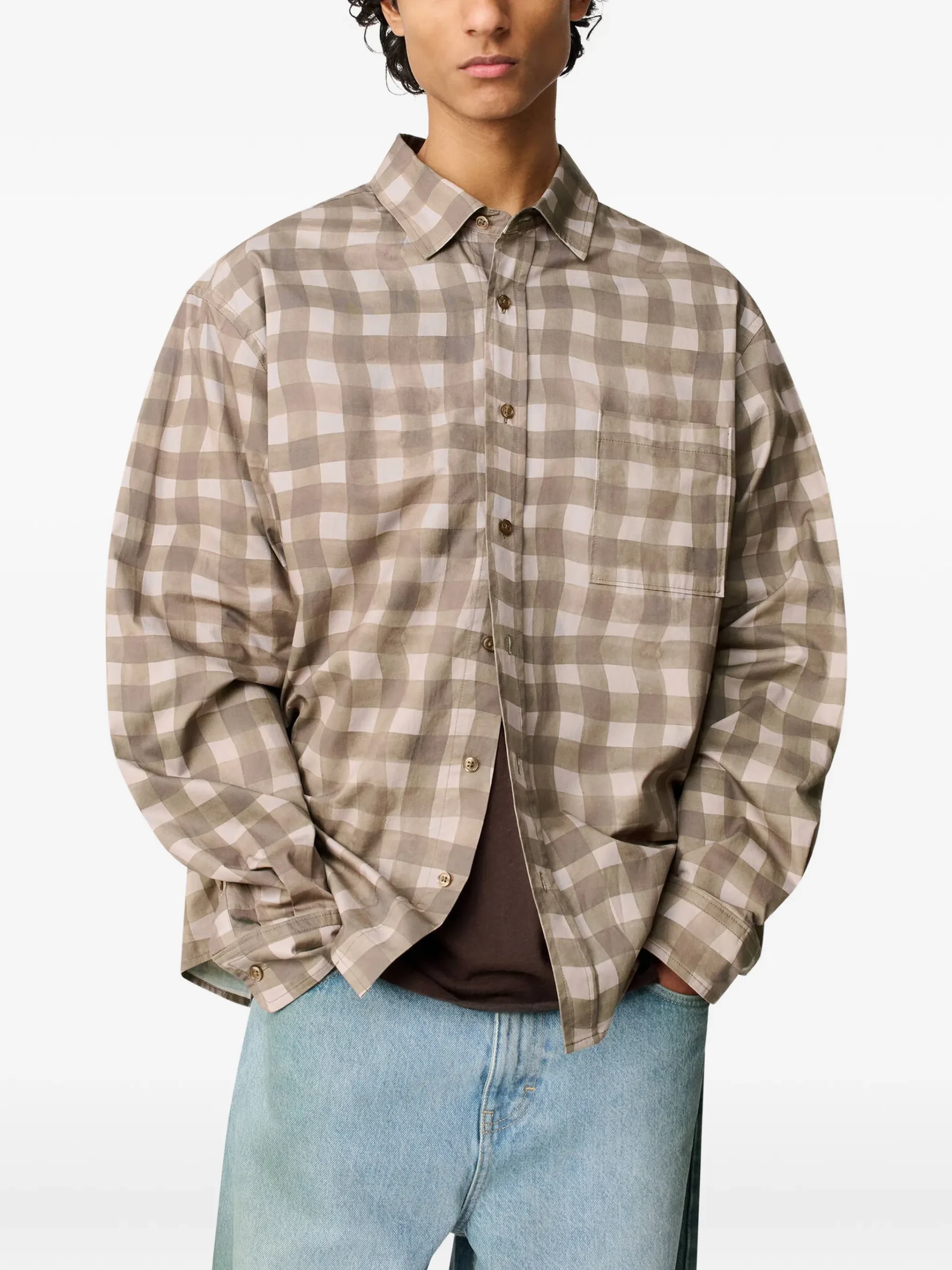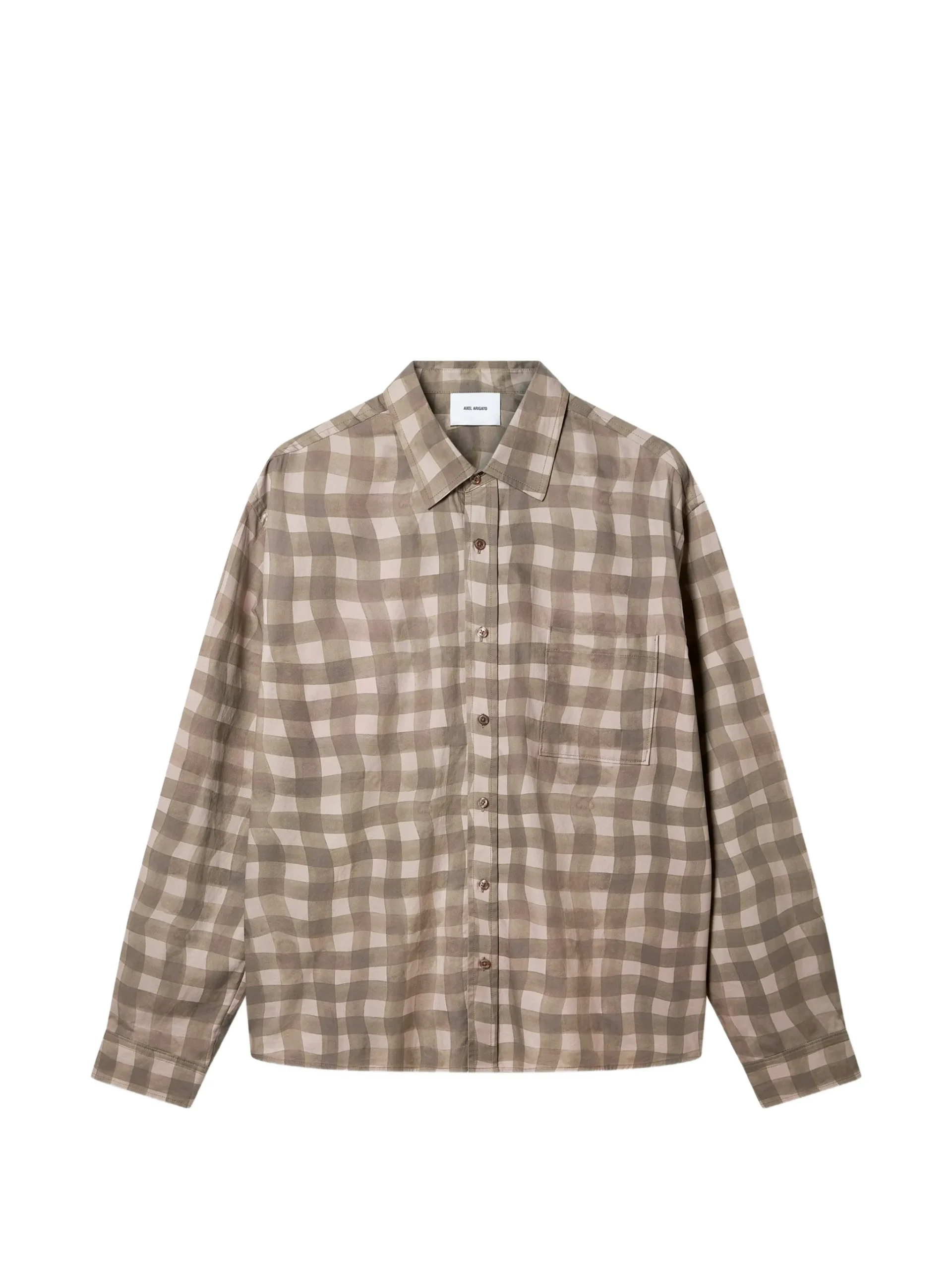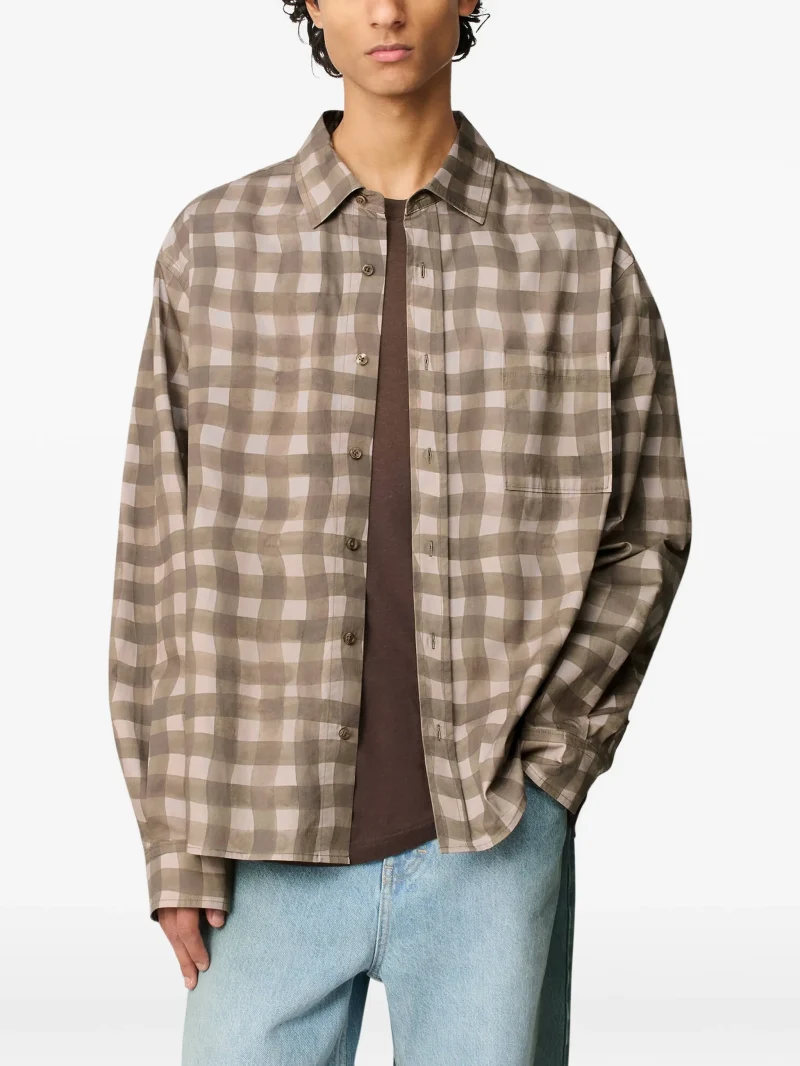Camasa Axel Arigato Distort Gingham maro, cu model gingham, buzunar pe piept, inchidere cu nasturi, maneci lungi si mansete cu nasturi. 100% bumbac