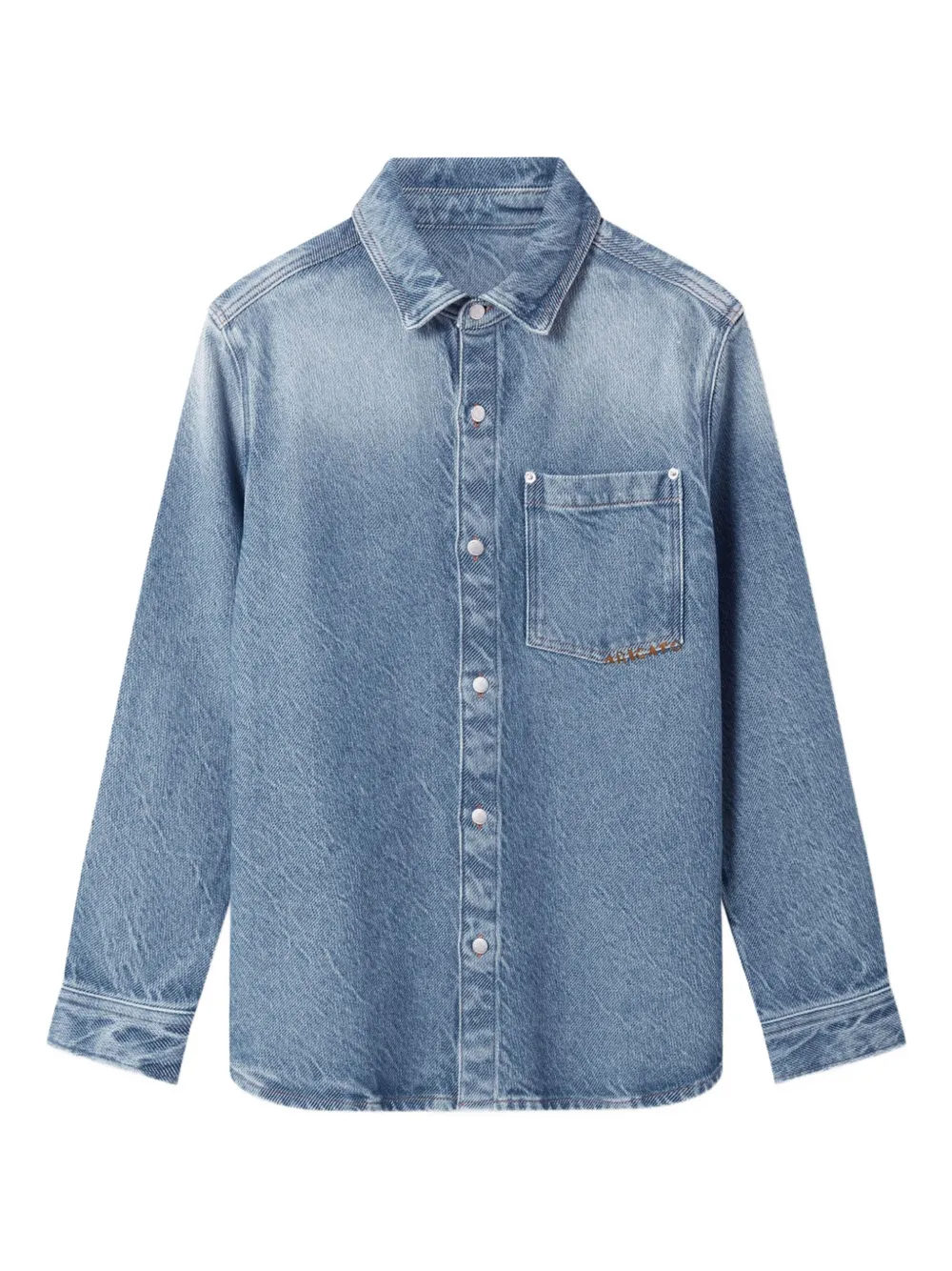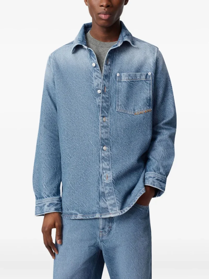 Camasa Axel Arigato Embroidered-Logo Denim albastru, din bumbac denim, cu guler clasic, inchidere cu nasturi metalici, maneci lungi, mansete cu nasturi, buzunar la piept si tiv drept. Potrivita pentru sezonul toamna/iarna. 100% bumbac.