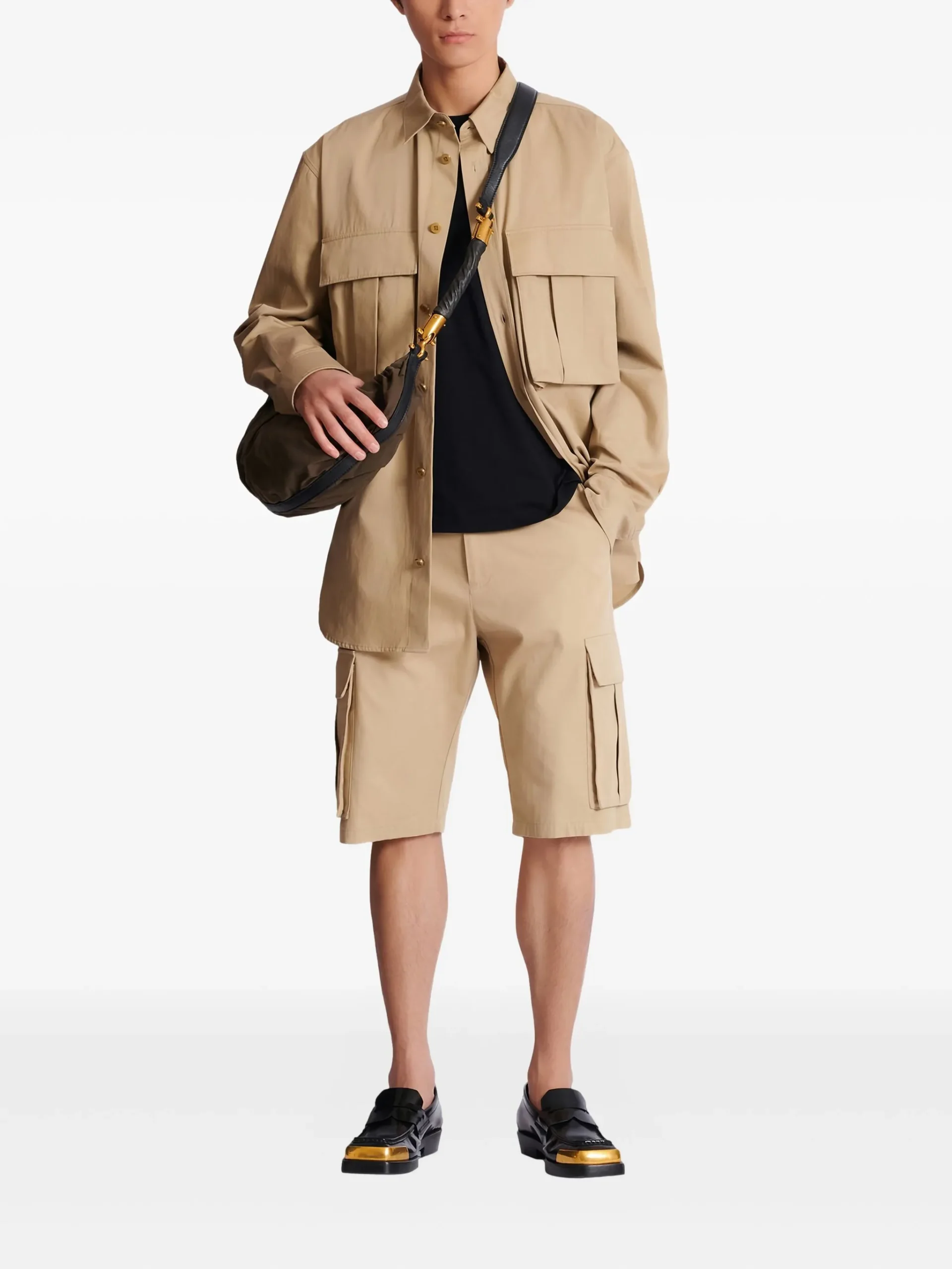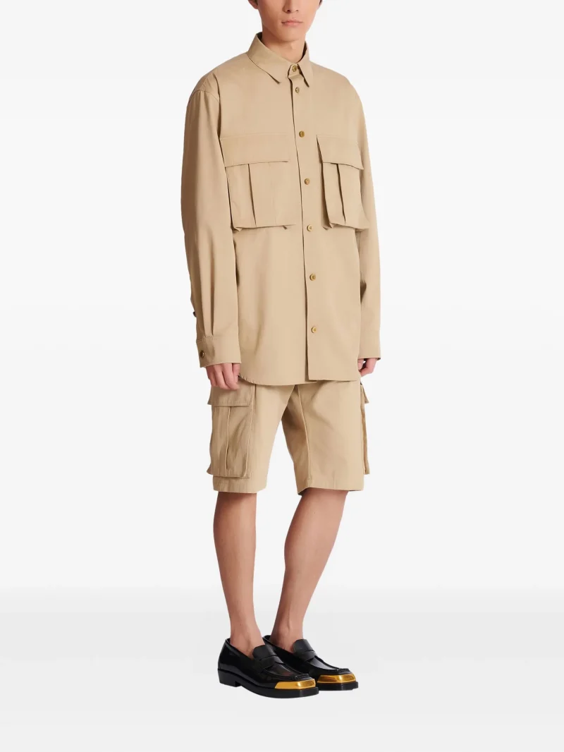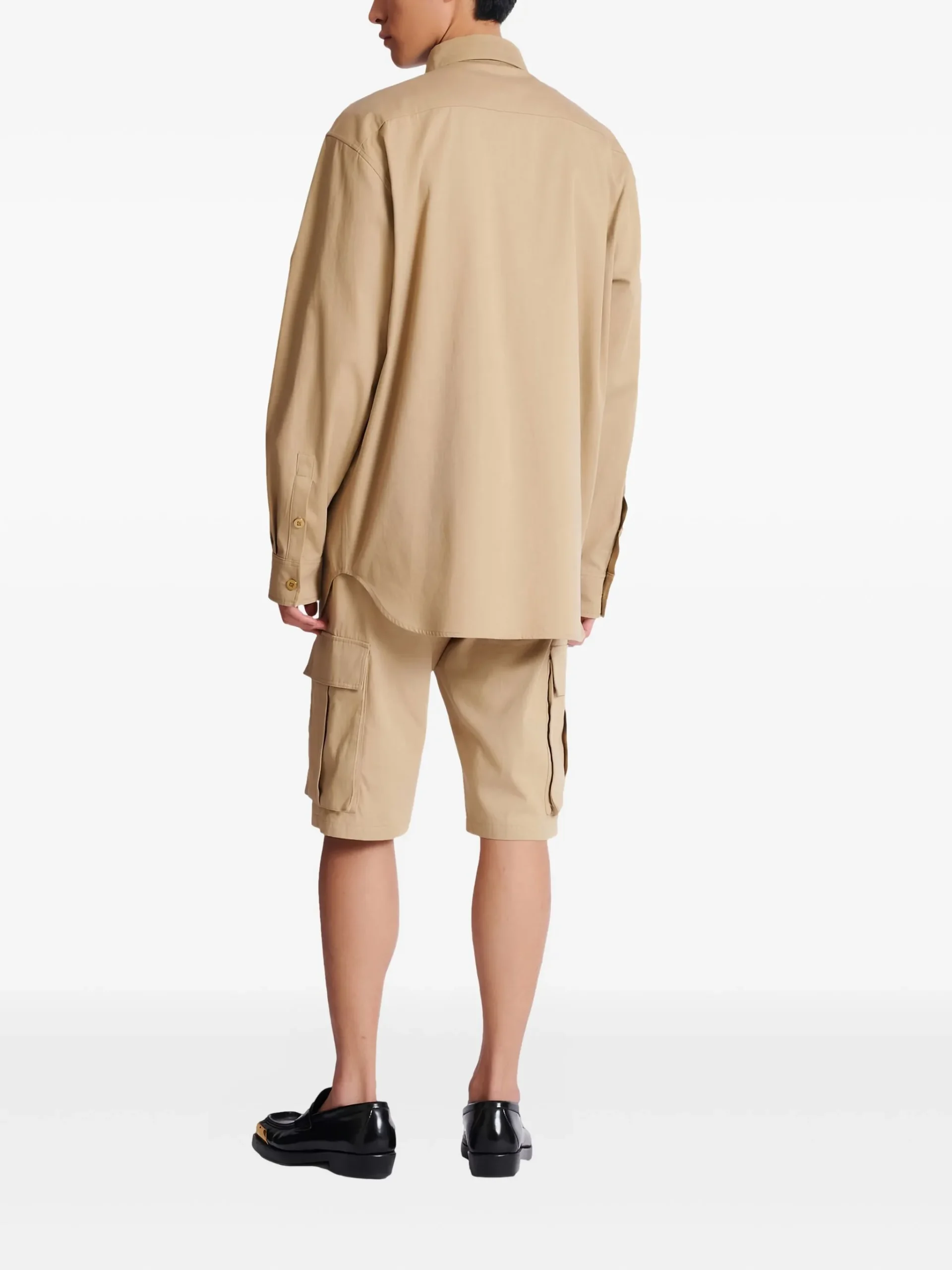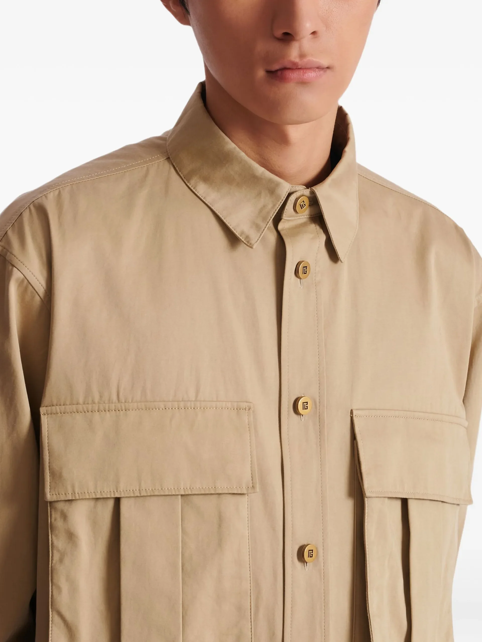 Camasa Balmain long-sleeve flap-pockets bej, din bumbac, cu inchidere cu nasturi, buzunare aplicate pe piept, maneci lungi si mansete cu nasturi.100% bumbac
