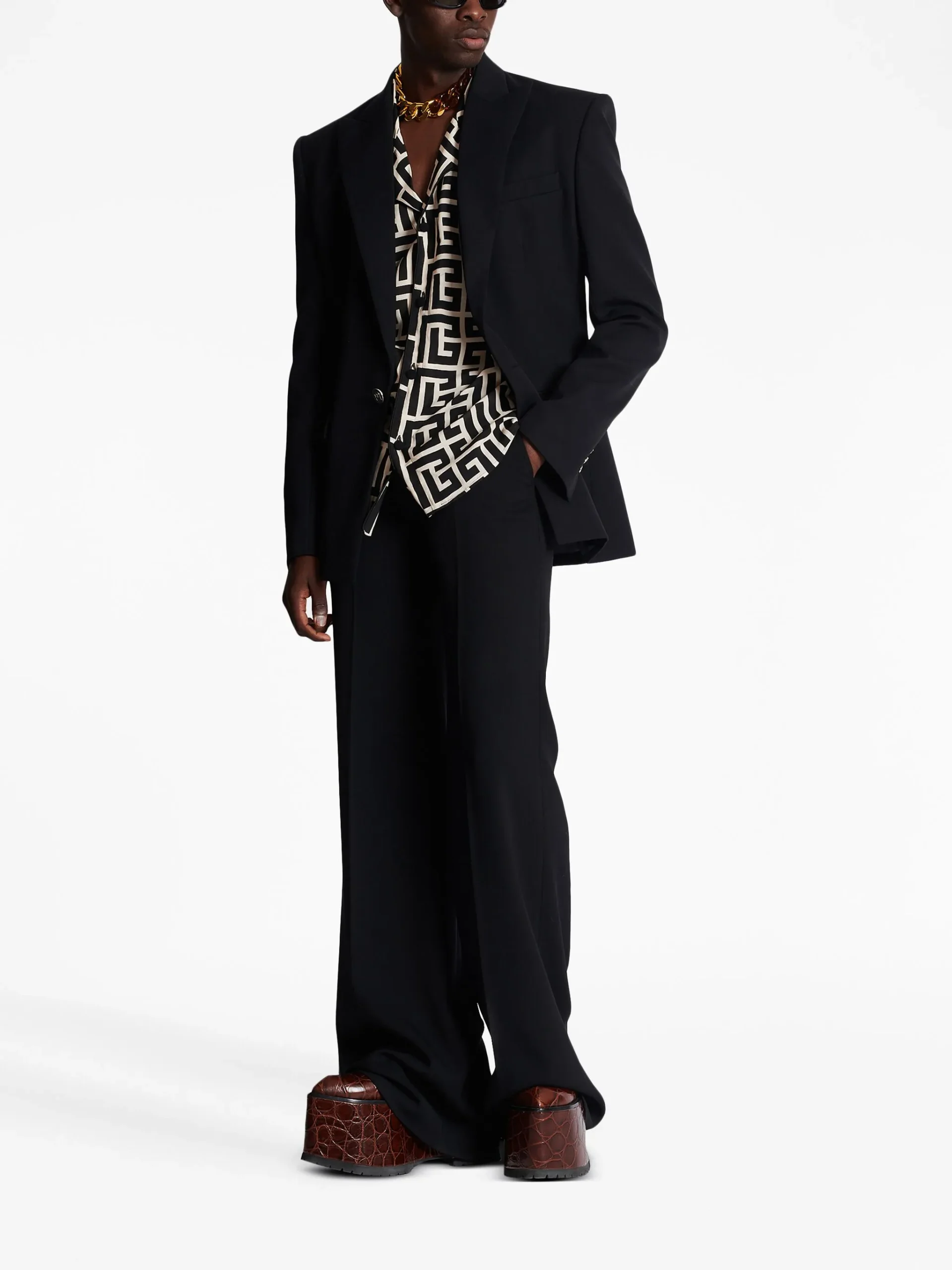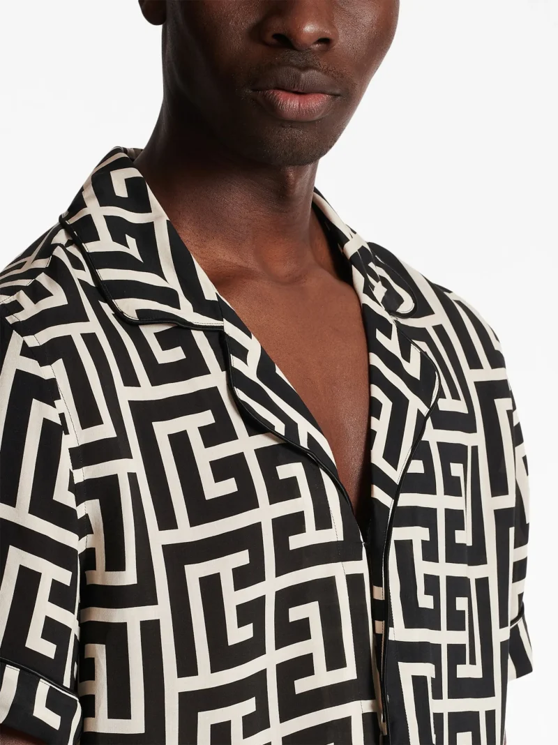 Camasa Balmain monogram-print pyjama alb/negru