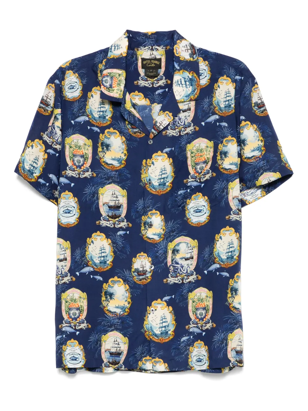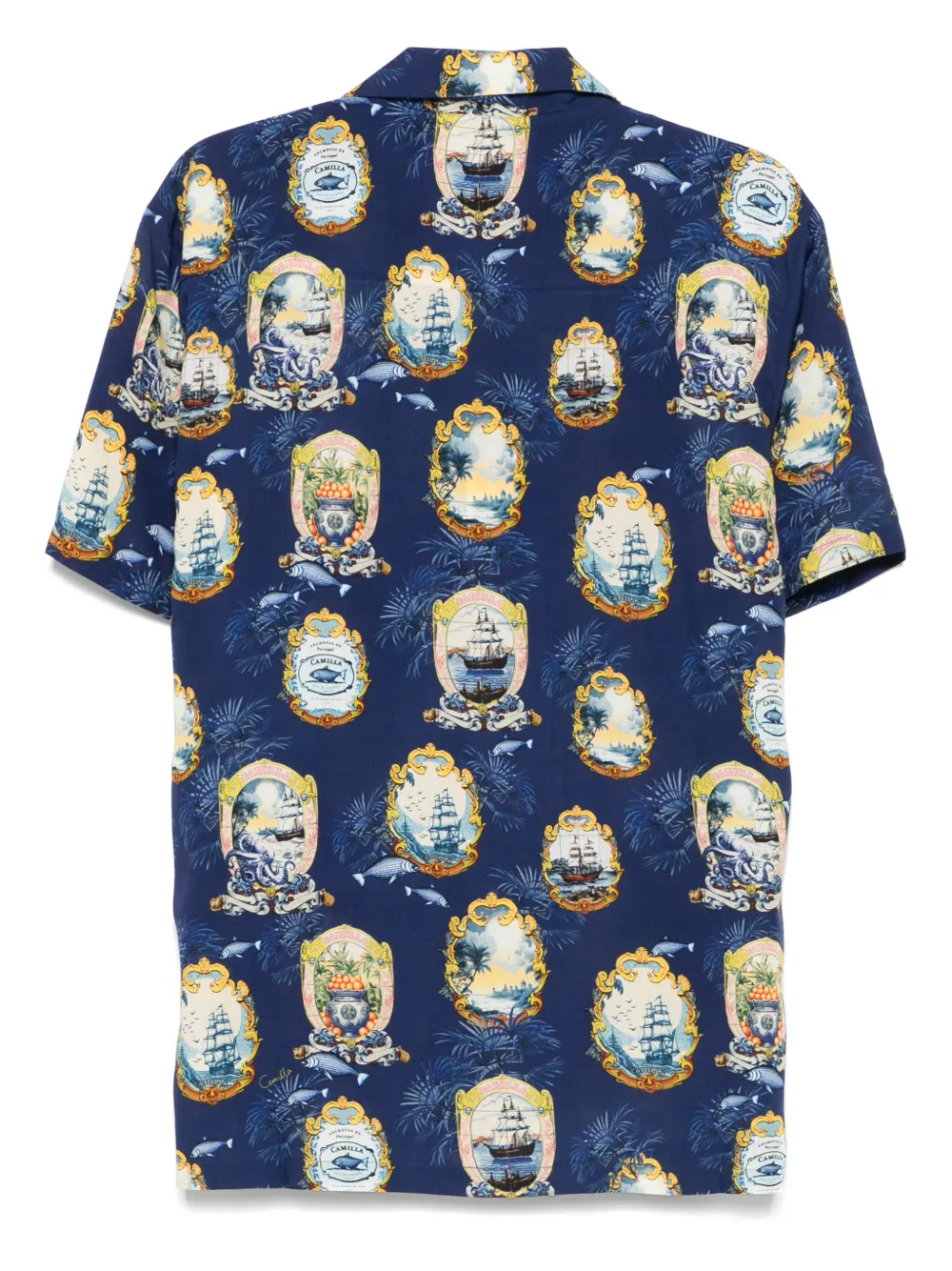 Camasa Camilla Camp Collar albastru, din modal, cu guler camp, cu inchidere nasturi, maneci scurte, grafica imprimata pe toata suprafata si tiv drept. Potrivita pentru sezonul primavara/vara. 100% modal.