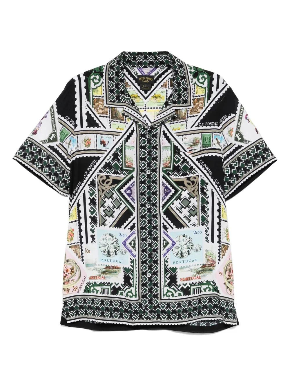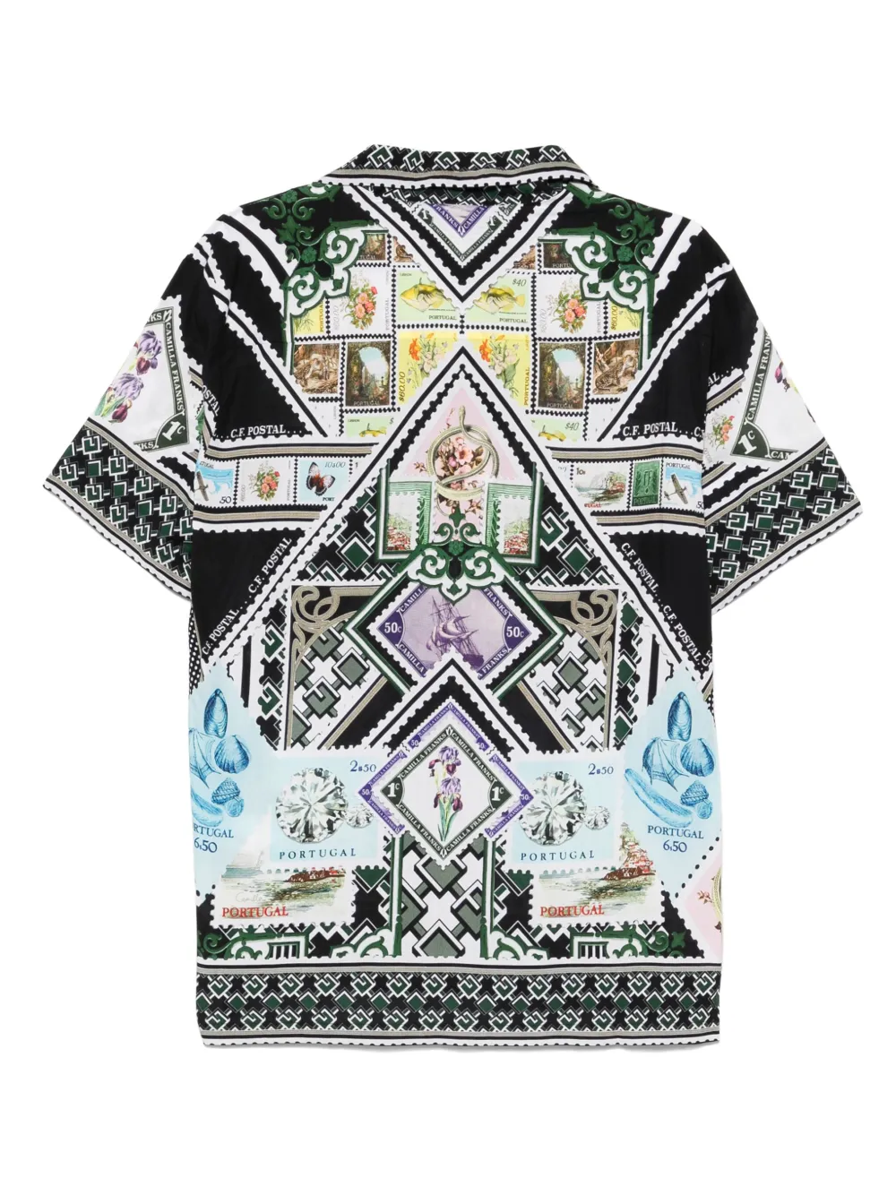 Camasa Camilla Camp-Collar multicolor, din matase, cu guler camp, inchidere cu nasturi, maneci scurte, grafica imprimata si tiv drept. Potrivita pentru sezonul primavara/vara. 100% matase.