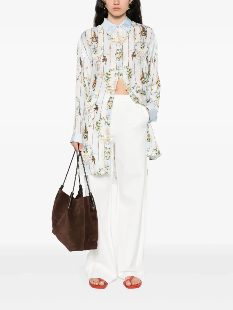 Camasa Camilla Graphic-Print multicolor, din matase, cu guler clasic, inchiedre cu nasturi, maneci lungi, mansete cu nasturi, grafica imprimata si tiv drept. Potrivita pentru sezonul primavara/vara. 100% matase.