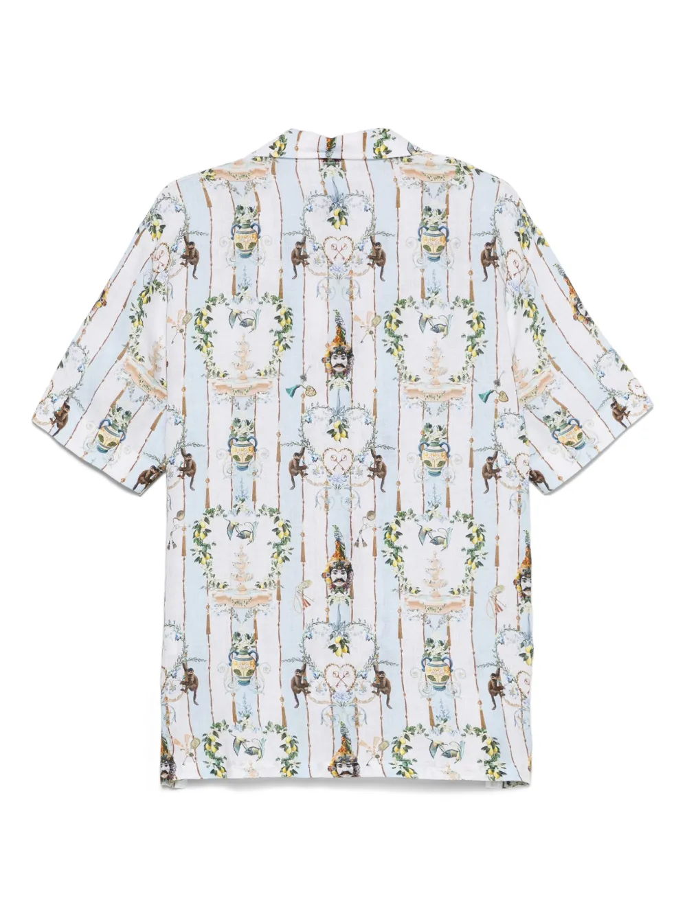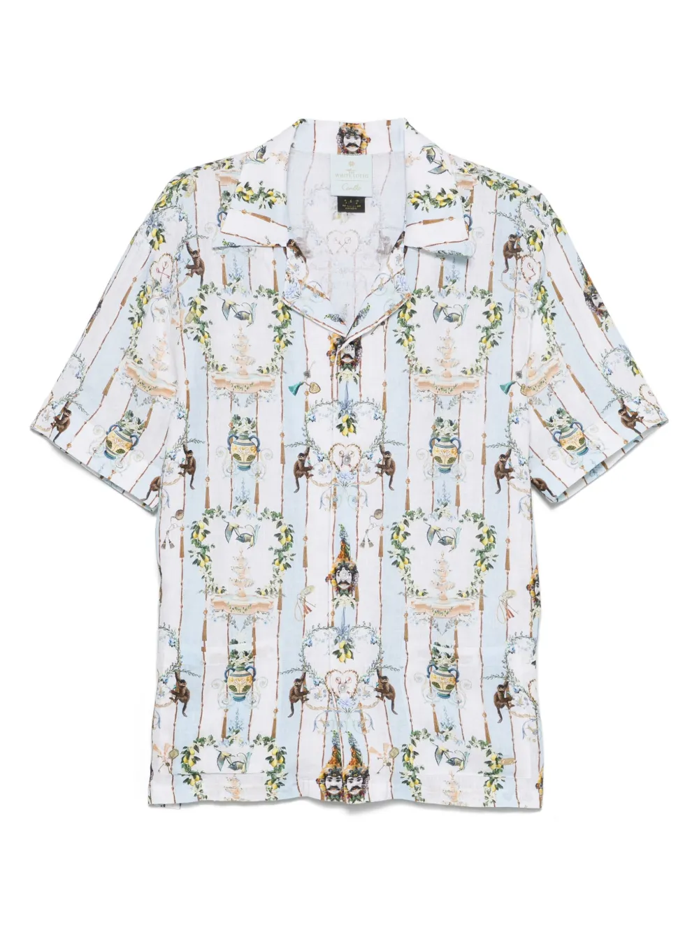 Camasa Camilla Linen albastru, din in, cu rever crestat, inchidere cu nasturi, maneci scurte, grafica imprimata si tiv drept. Potrivita pentru sezonul primavara/vara. 100% in.