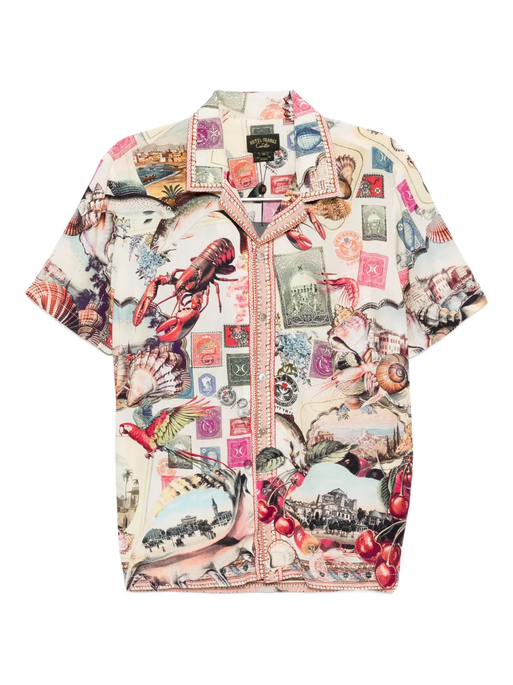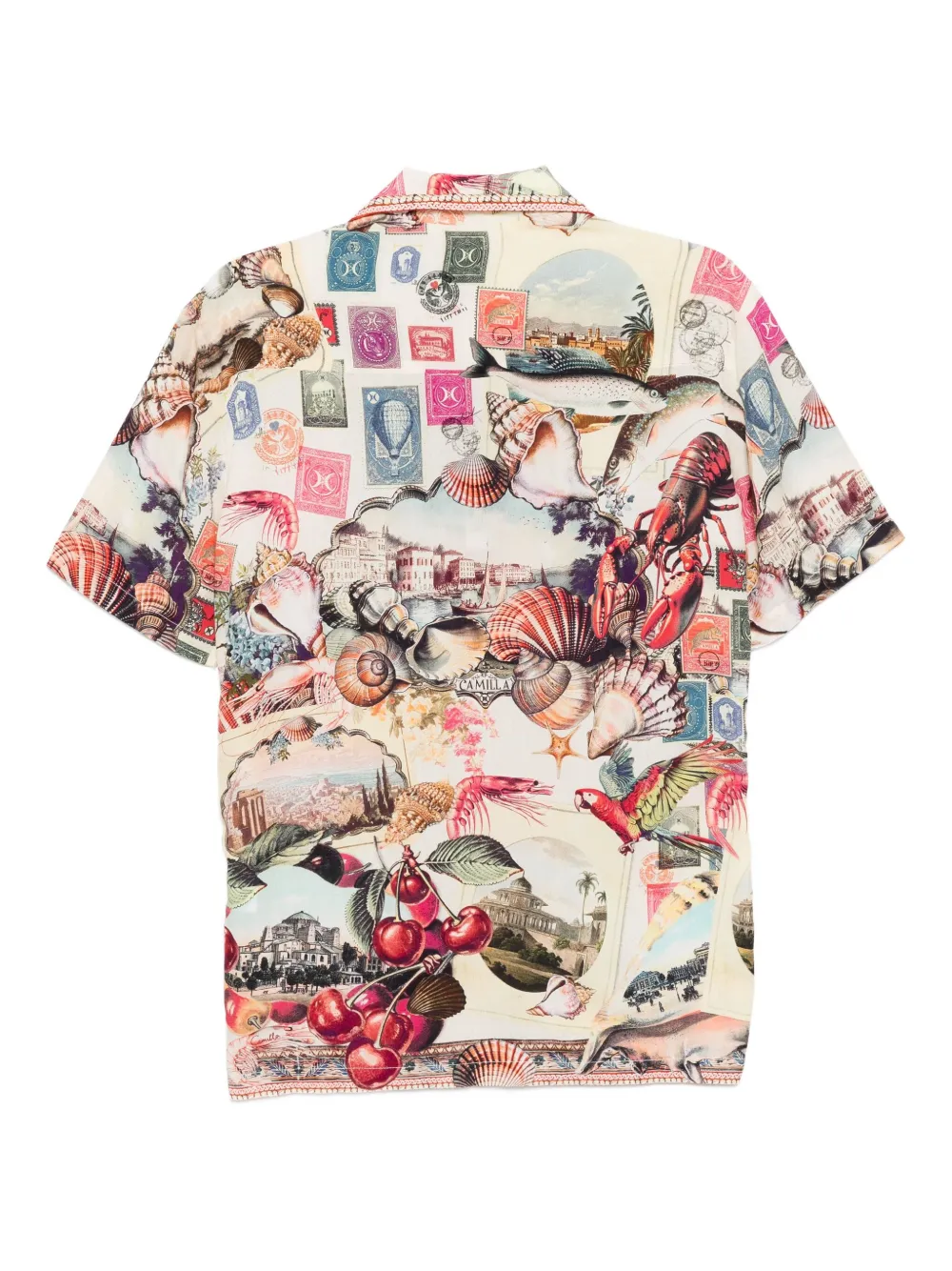 Camasa Camilla Notes From The Road multicolor, cu guler camp, inchidere cu nasturi, maneci scurte, model grafic ” Notes From The Road”” imprimat si tiv drept. Potrivita pentru sezonul toamna/iarna. 100% modal.