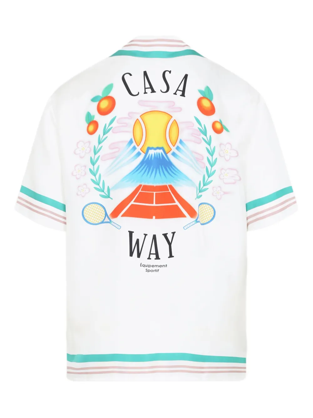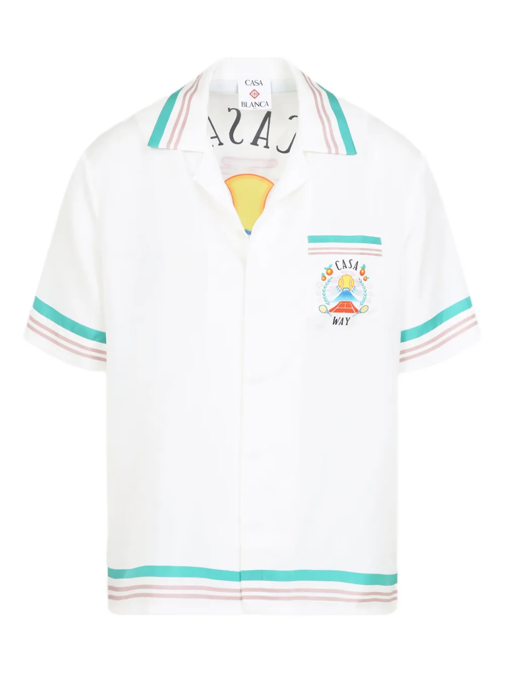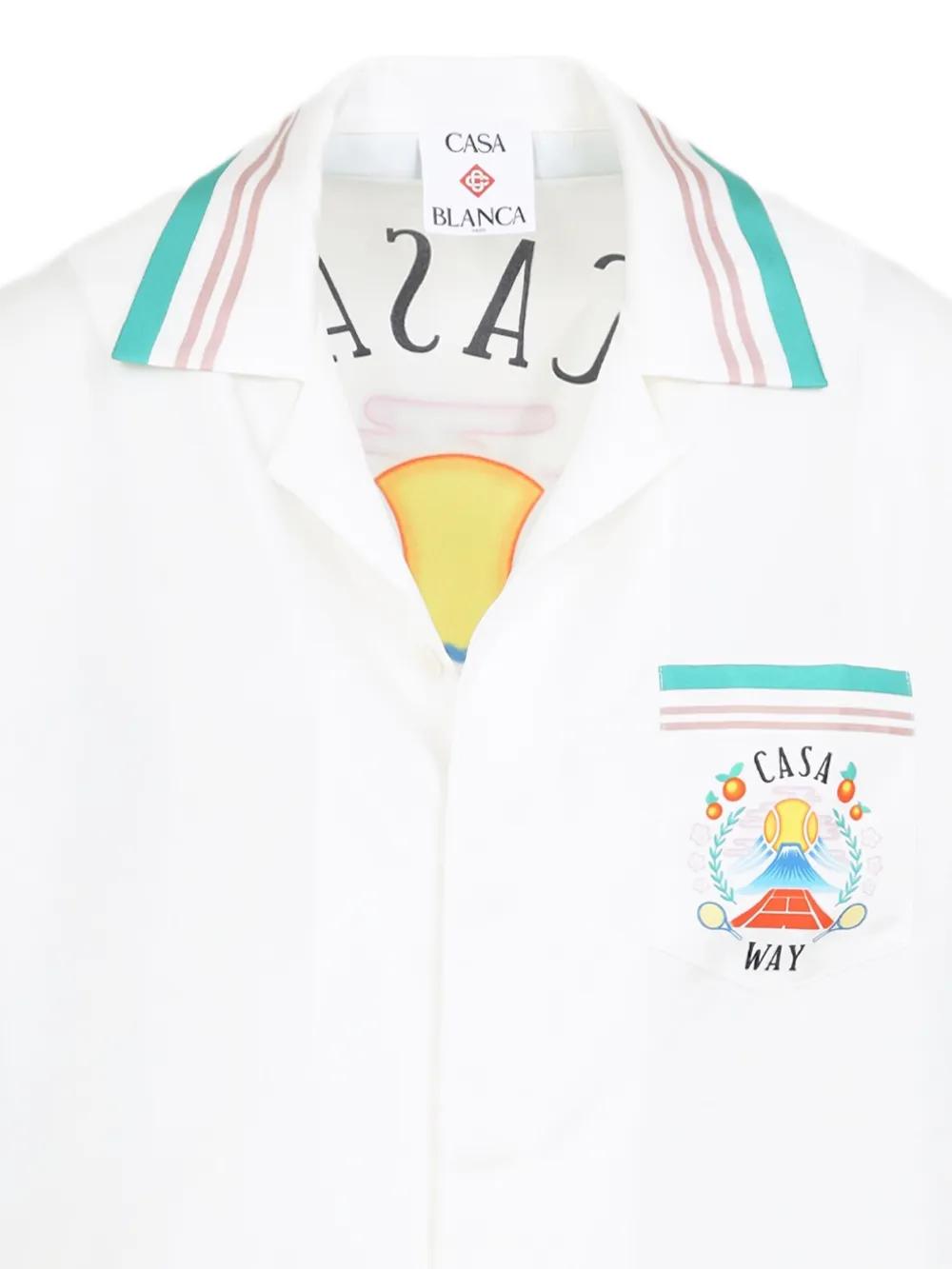 Camasa Casablanca Casa Way silk alb, maneci scurte, inchidere cu nasturi, Casa Way print. 100% matase