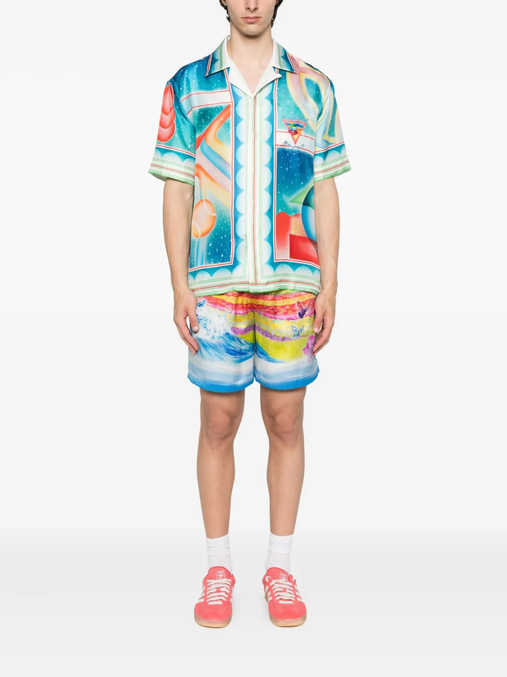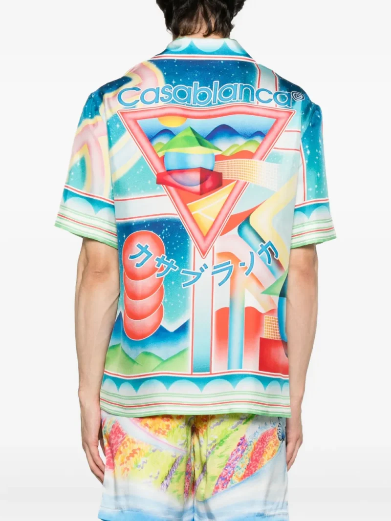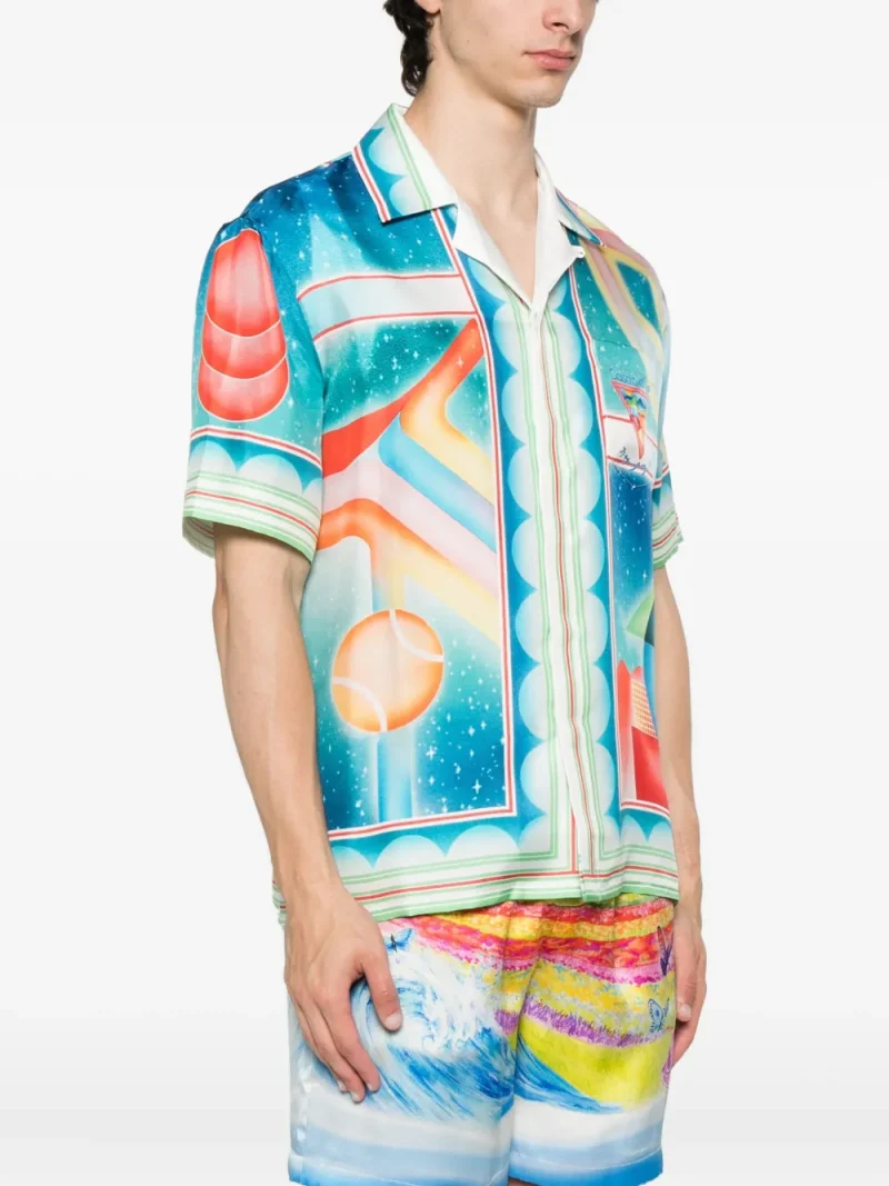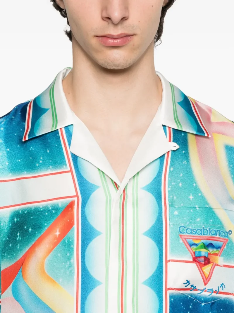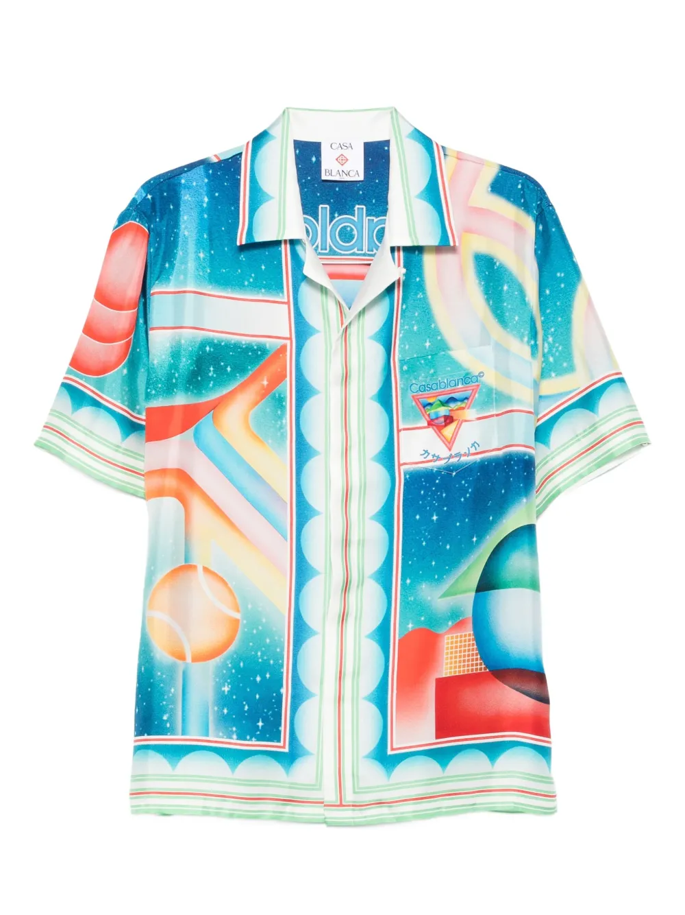 Camasa Casablanca Galaxy Court albastru, geometric-print, inchidere cu nasturi, maneci scurte. 100% matase
