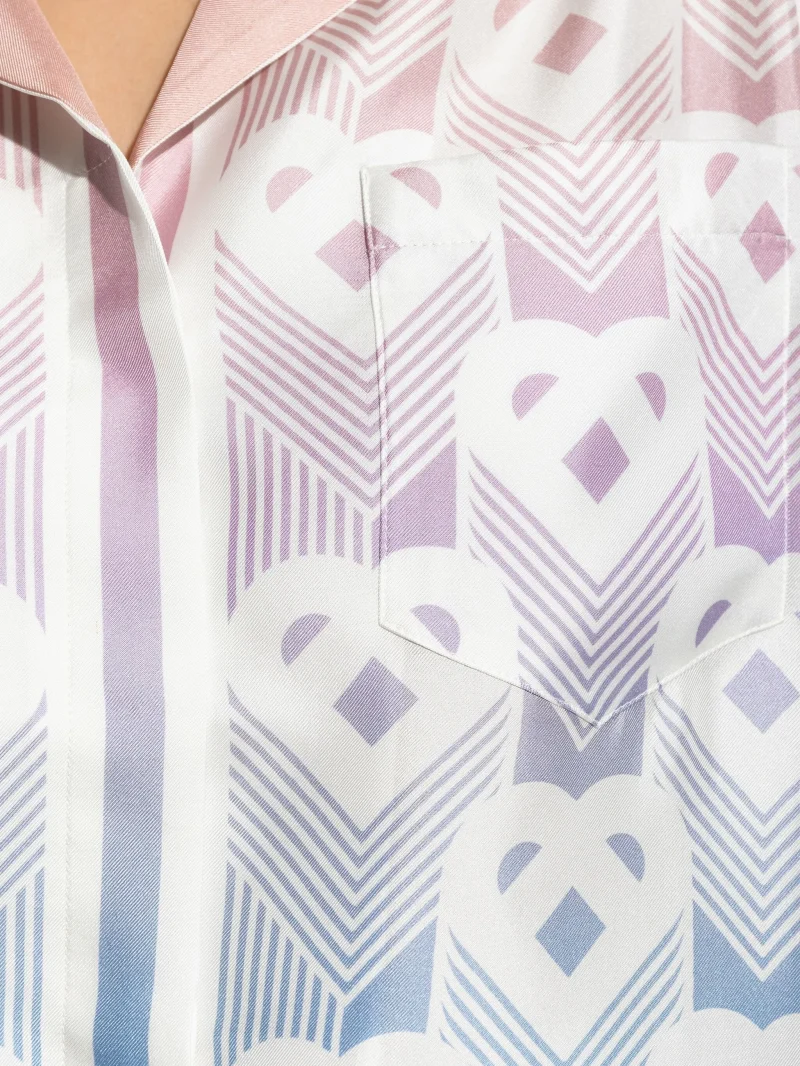 Camasa Casablanca heart-monogram multicolor, inchidere cu nasturi, efect ombre, maneci scurte, guler clasic, model monograma cu inima.100% matase