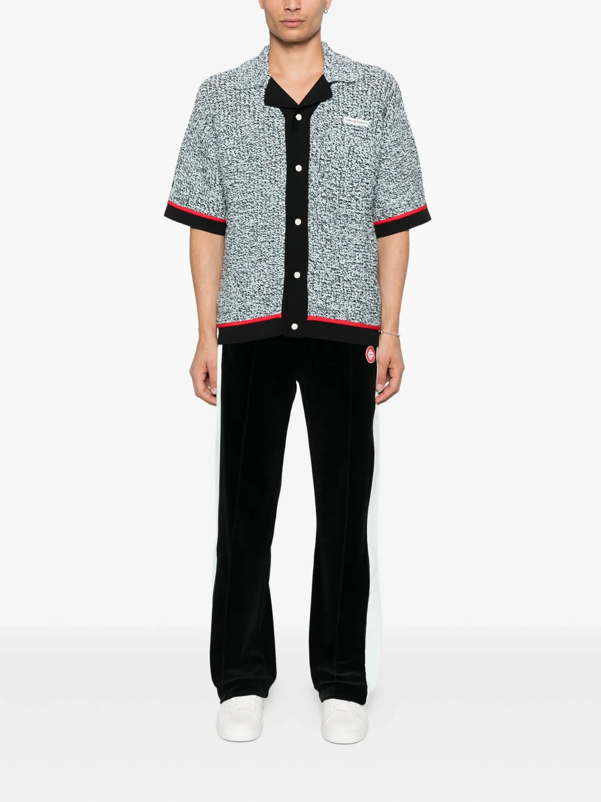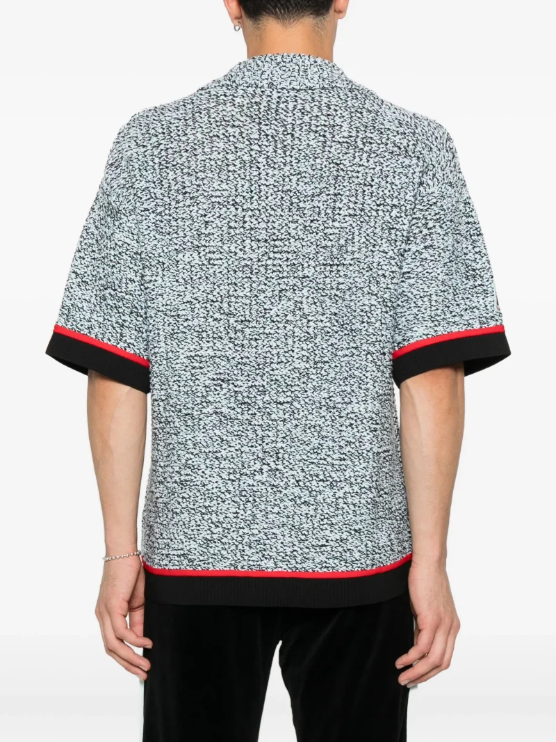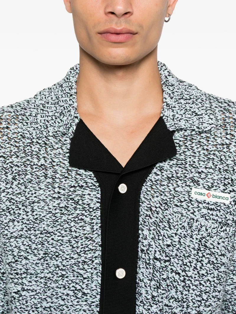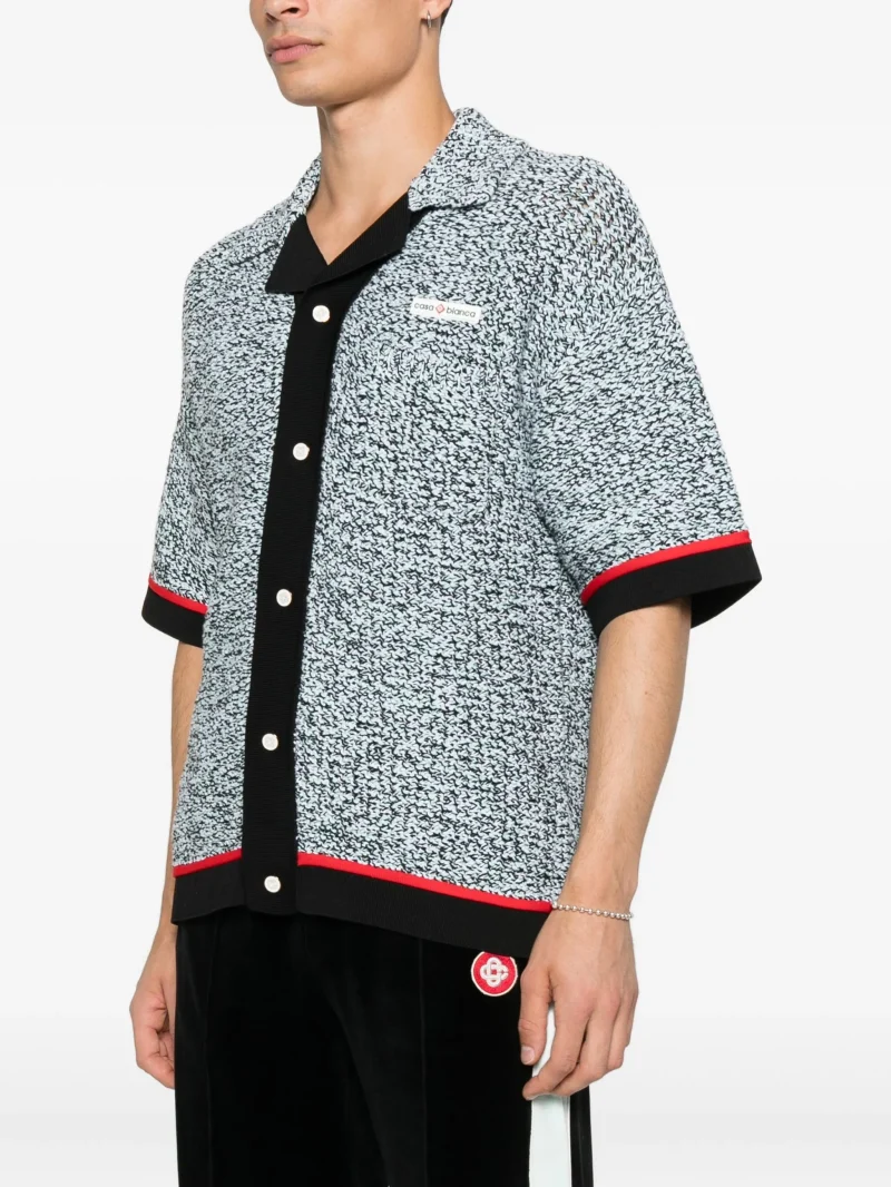 Camasa Casablanca mouliné albastru, tricotaj texturat, inchidere cu nasturi, maneci scurte, logo pe partea din fata. 100% bumbac