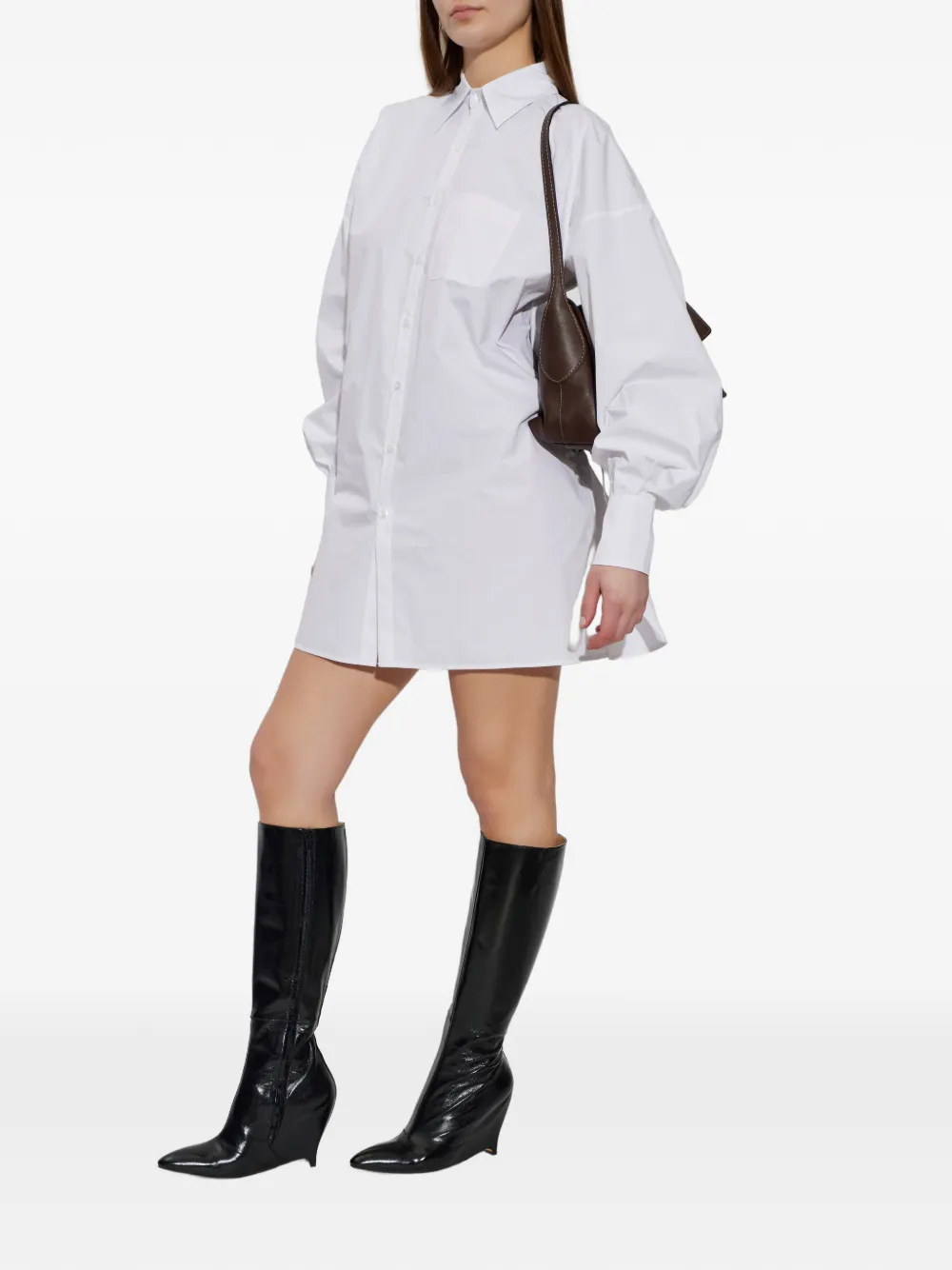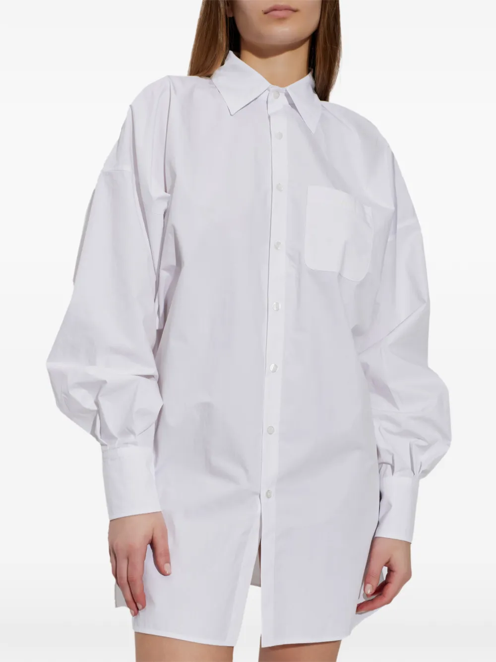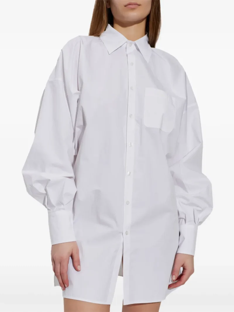 Camasa Coperni Drawstring-Waist alb, cu guler clasic, inchidere cu nasturi, maneci lungi bufante, mansete cu nasturi, snur reglabil in partea inferioara si tiv drept. Potrivita pentrus sezonul primavara/vara. 72% bumbac; 28% poliamida.