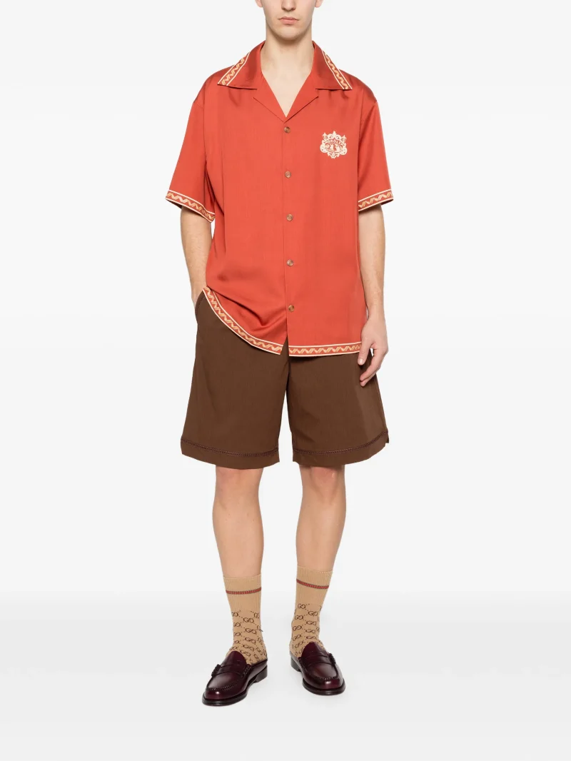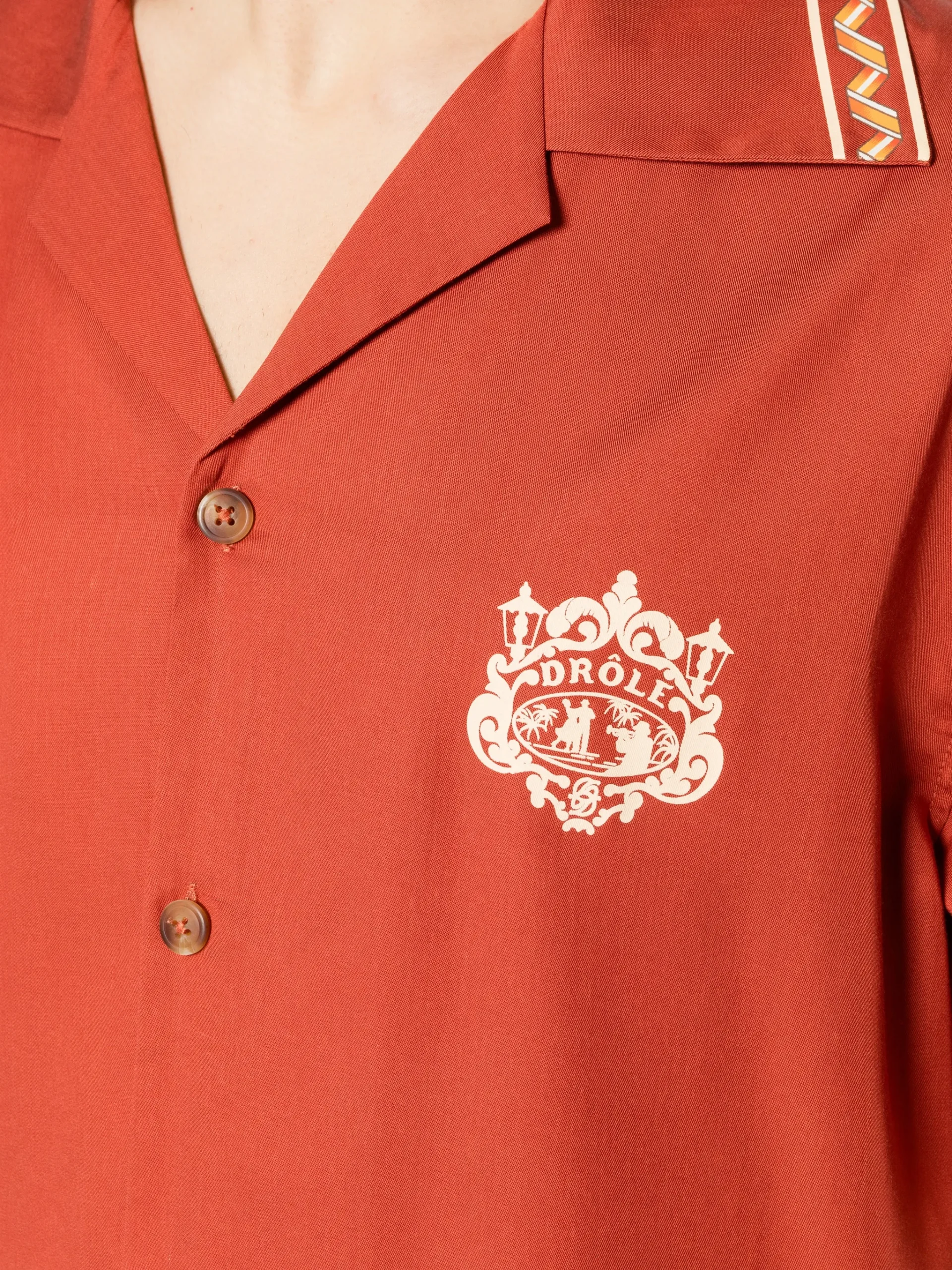 Camasa Drole De Monsieur Brodee Danseurs Zigzag-Trim portocaliu, realizata din lyocell, cu rever crestat decorat cu grafica imprimata, inchidere cu nasturi, broderie Danseurs pe piept si pe spate & tiv drept. Potrivita pentru sezonul primavara/vara. 100% lyocell.