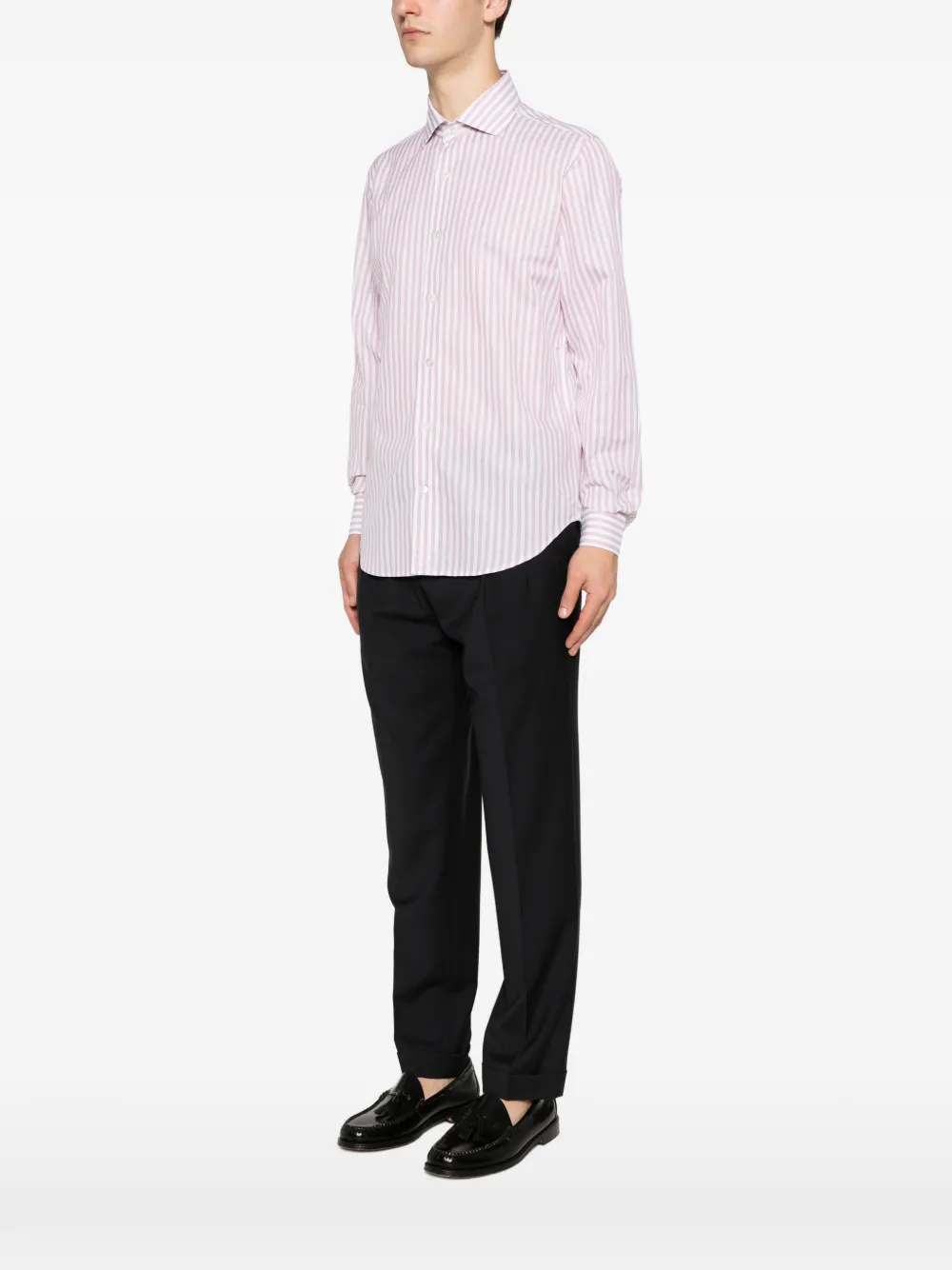 Camasa Eleventy Striped-Print Long-Sleeve roz