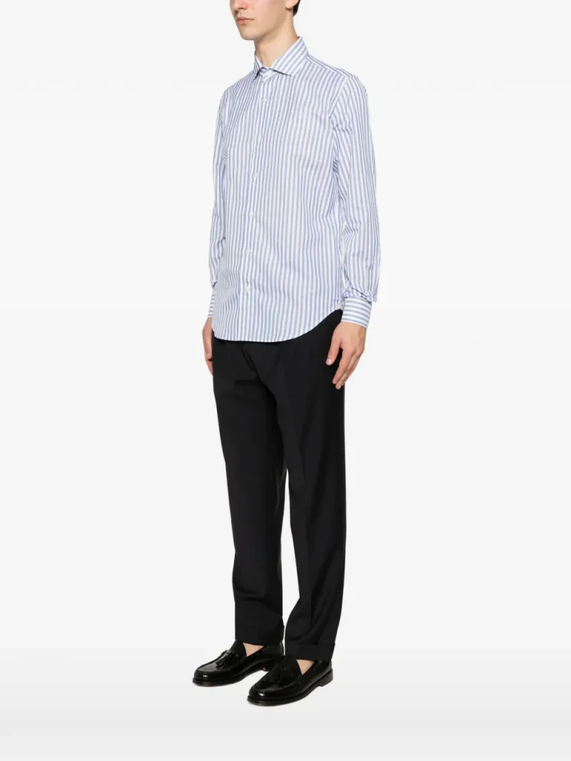 Camasa Eleventy Vertical-Stripe Spread-Collar alb